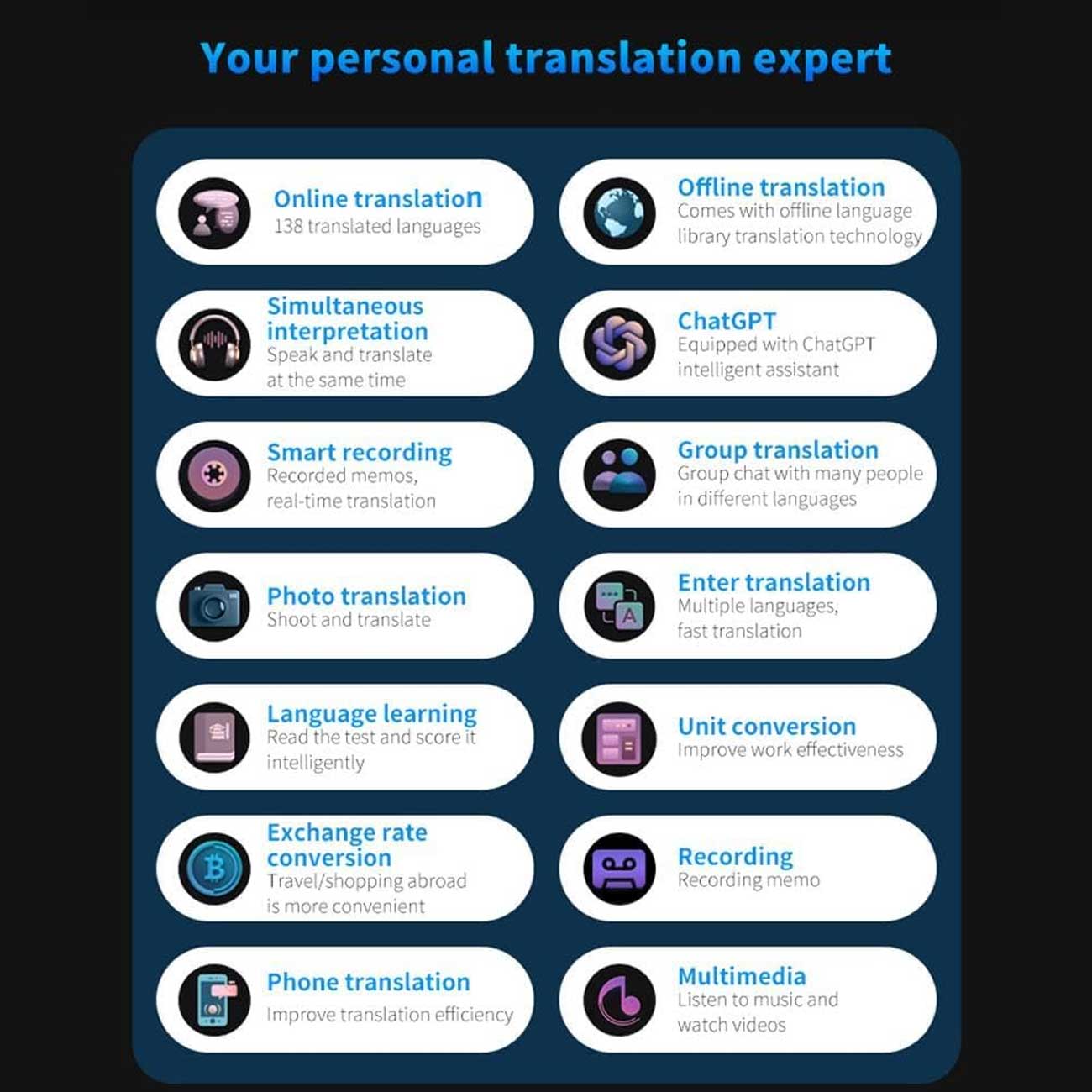 مترجم صوتی هوشمند جیبی S80 PRO برای ترجه آنلاین 138 زبان و آفلاین 18 زبان