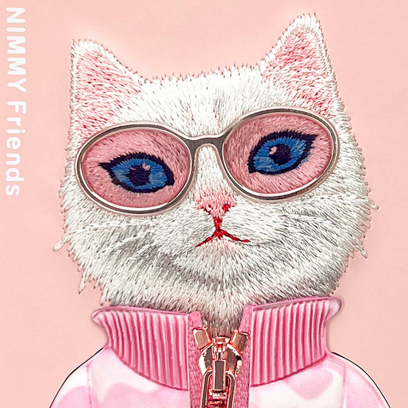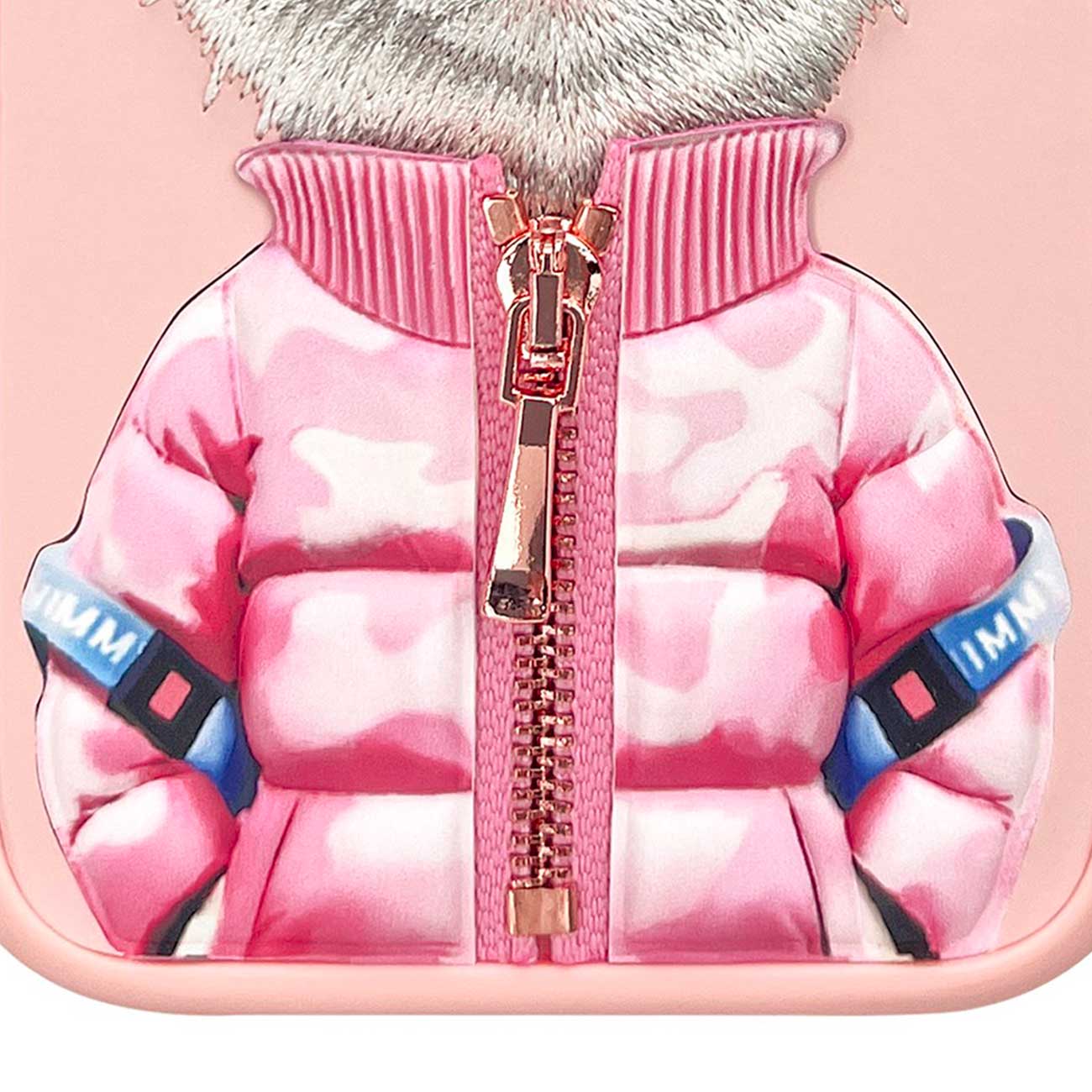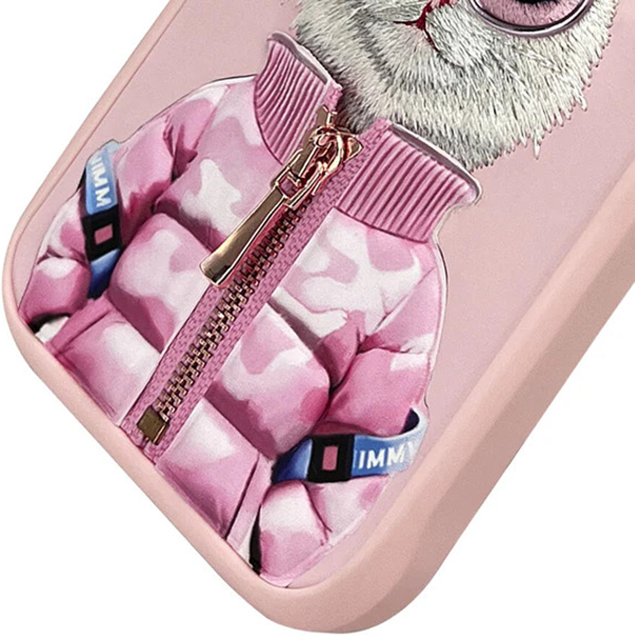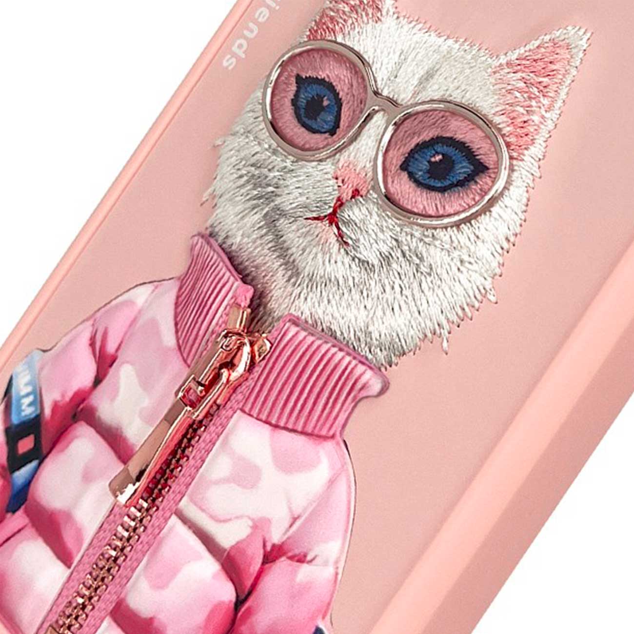 قاب محافظ گوشی آیفون 16 طرح گربه با عینک و زیپ واقعی نیمی IP16-04