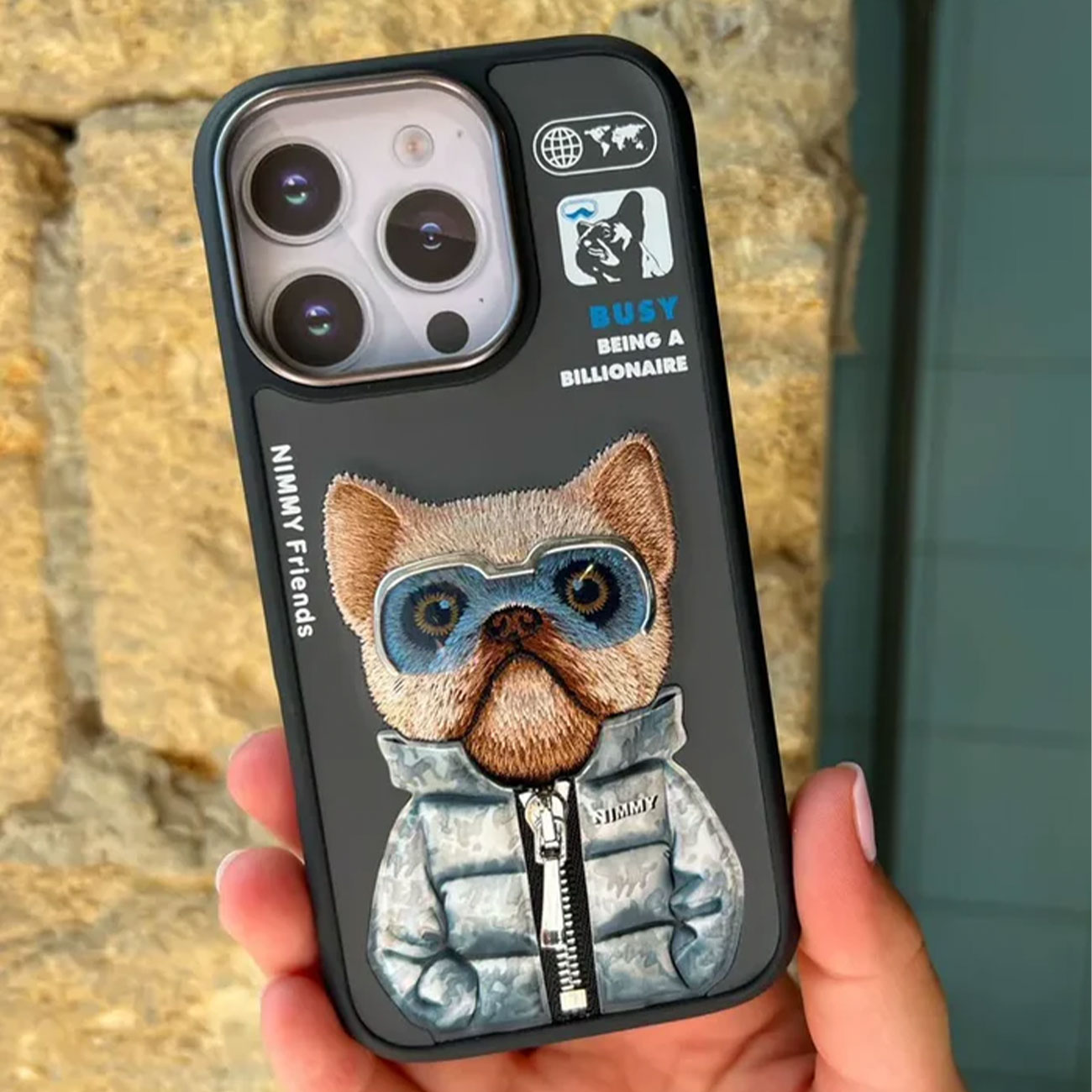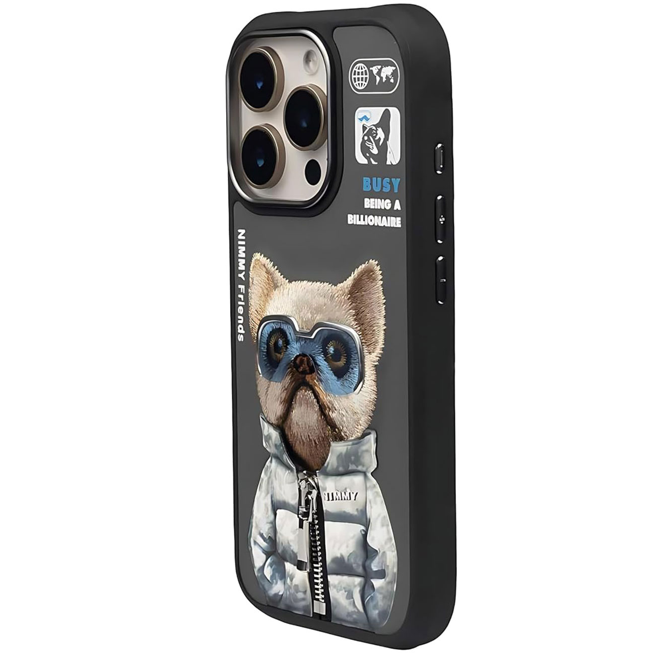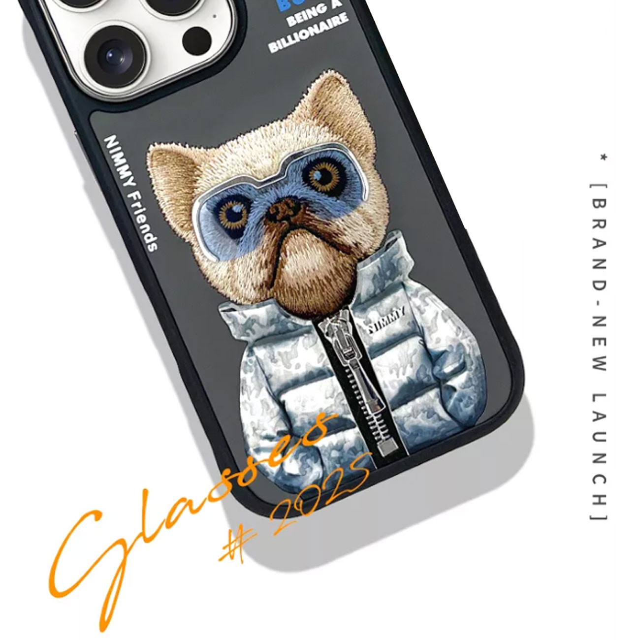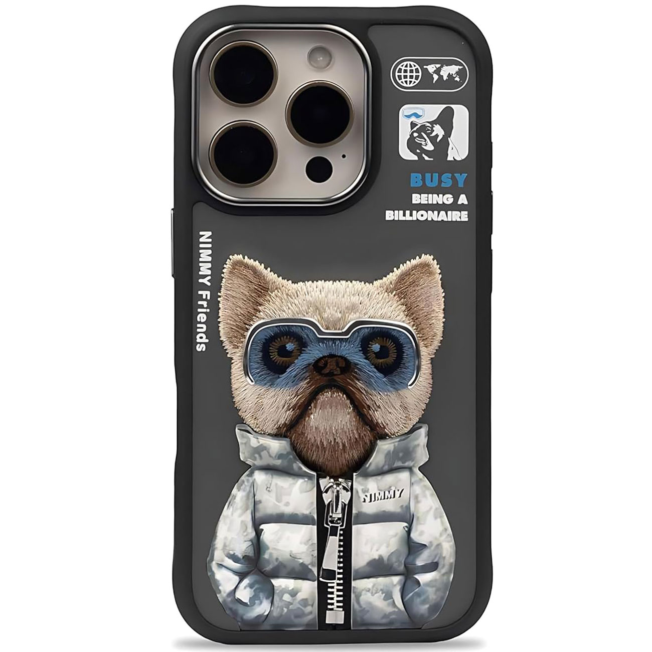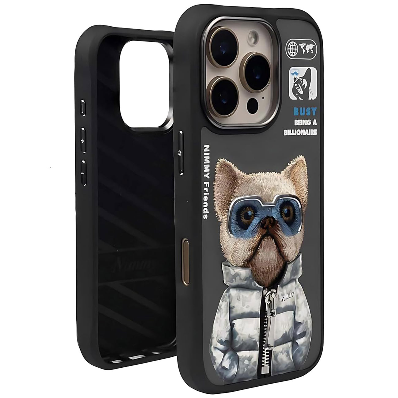 قاب گوشی آیفون 16 پرومکس طرح سگ عینکی با زیپ واقعی و استایل بینظیر نیمی IP16-PRO-MAX-01