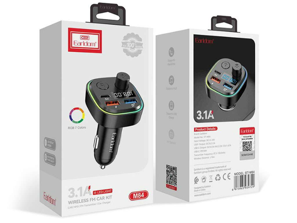 Earldom ET-M84 PD 18W USB 3.1A Wireless FM Car Kit