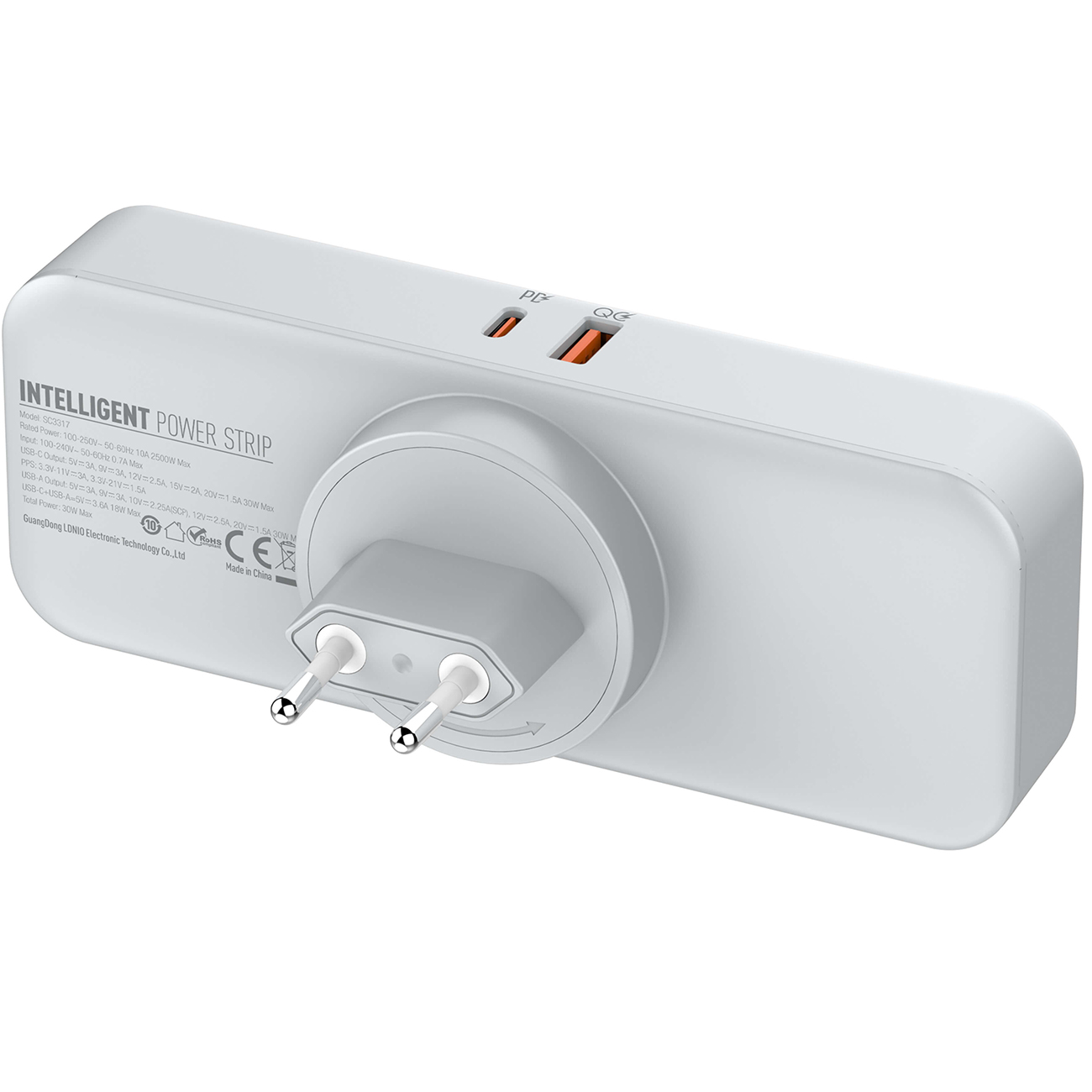 چندراهی برق دیواری 2500 وات 3 سوکت، یک USB و یک Type-C فست شارژ 30 وات الدنیو SC3317