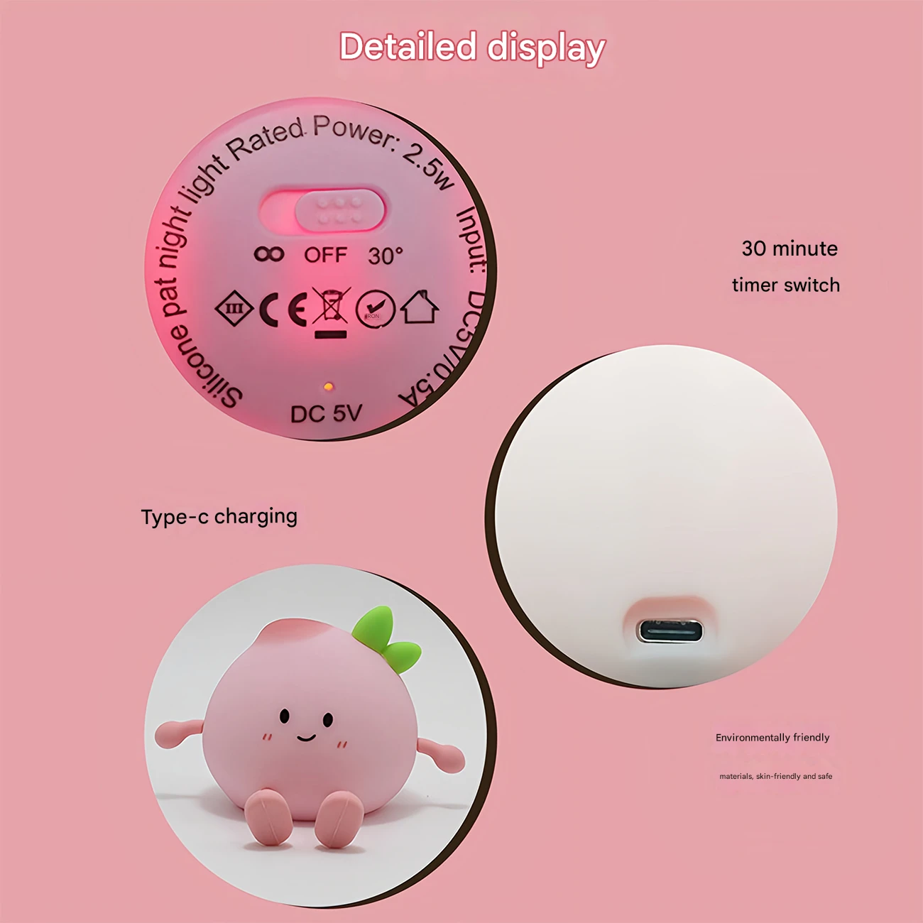 JXJA040 Rechargeable Desktop Night Light Peach Design