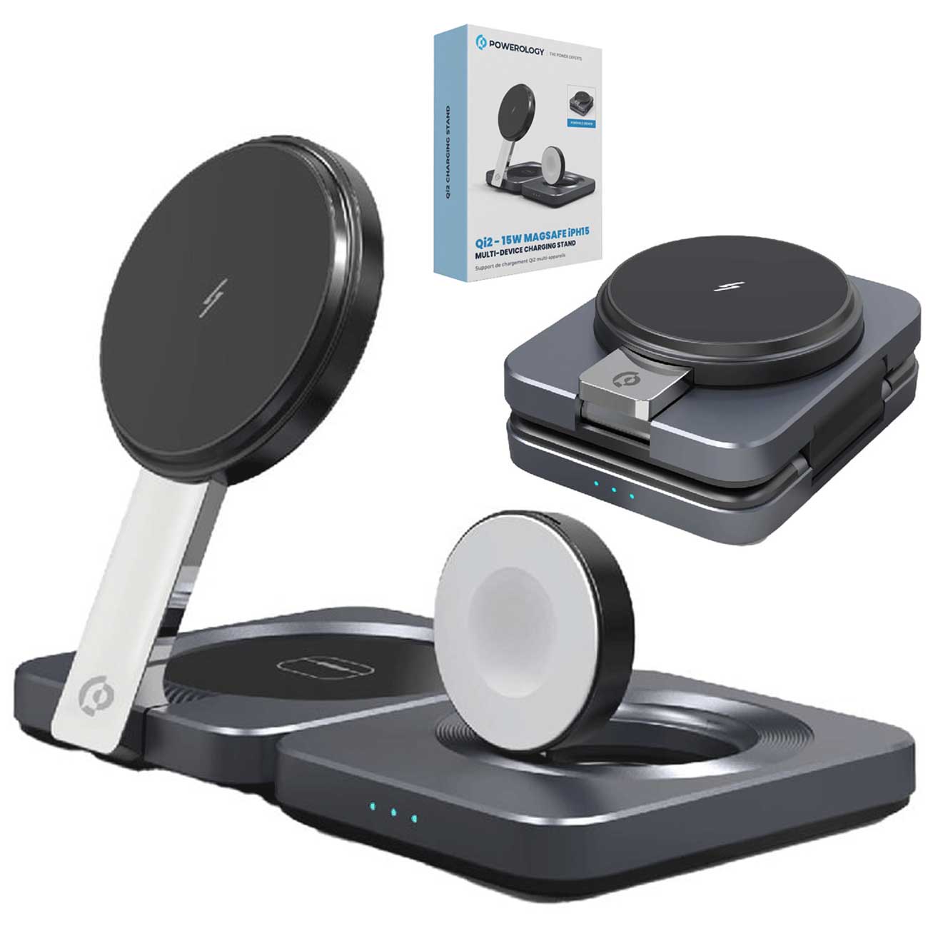 Powerology Qi2-15W Magsafe iPH15 Multi-Device Charging Stand PWCUQC027