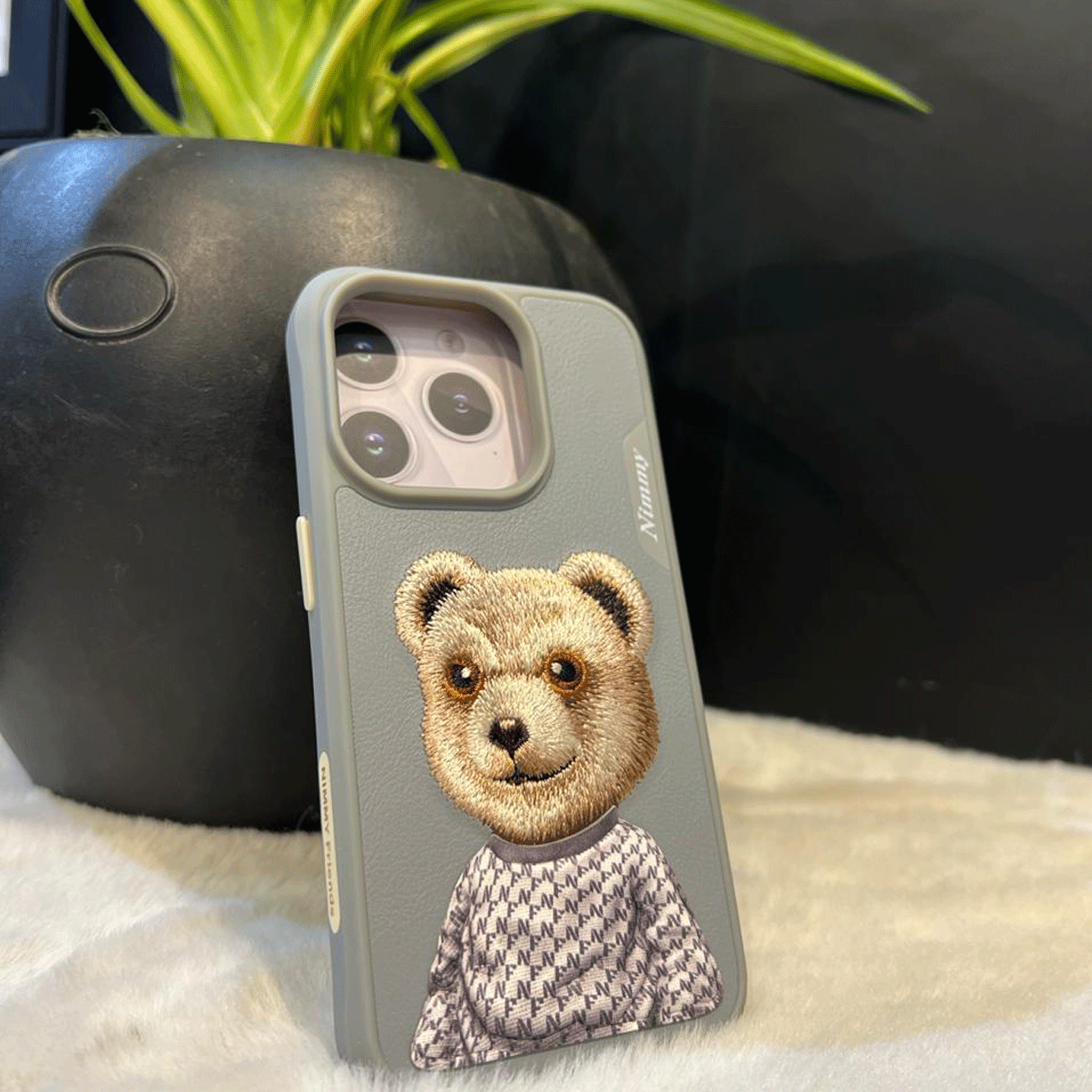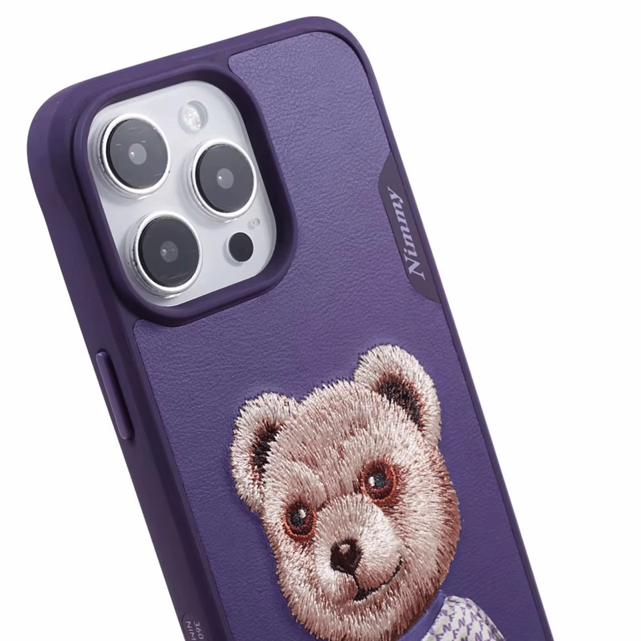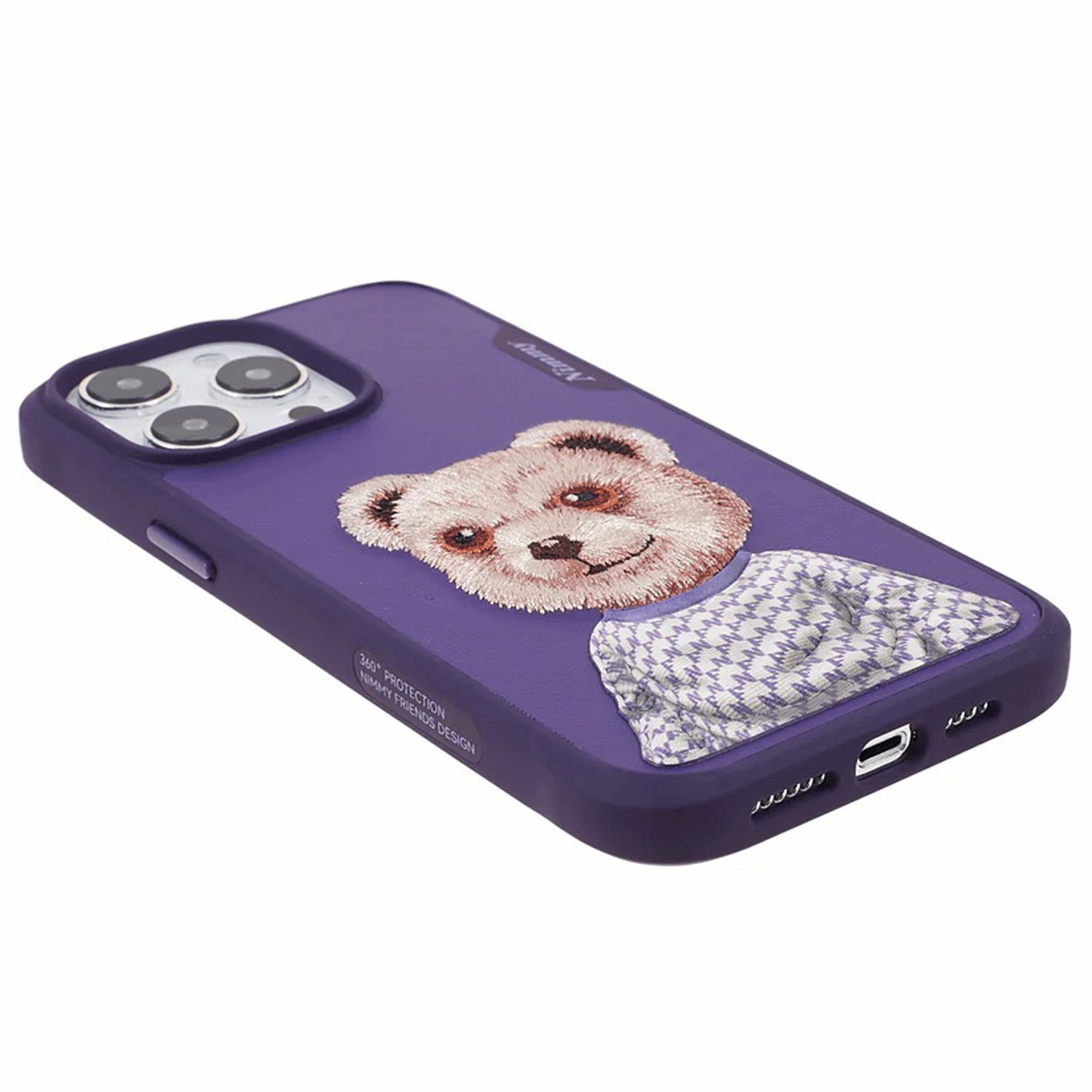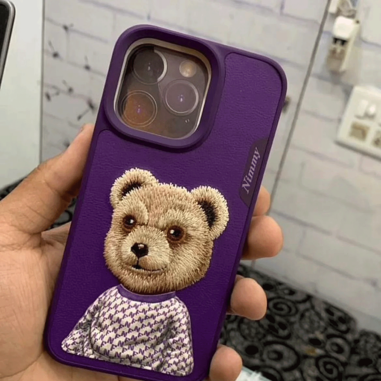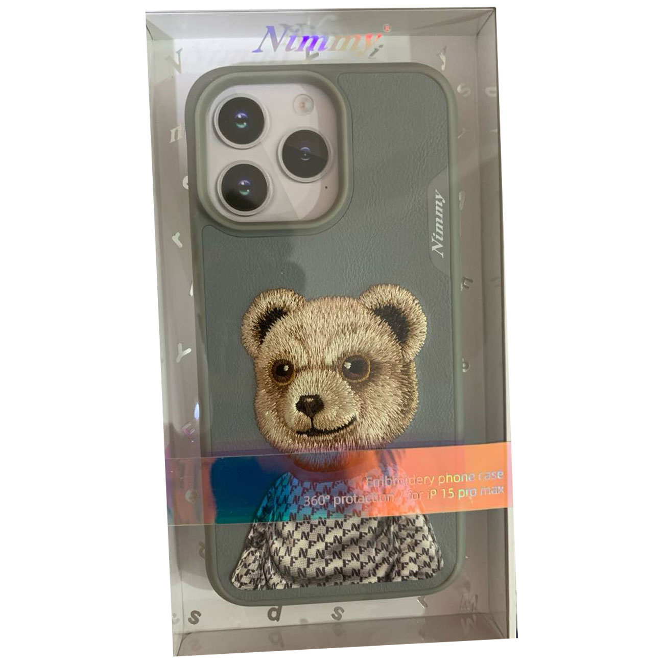 قاب محافظ گوشی آیفون 15 پرومکس طرح خرس با خز واقعی نیمی