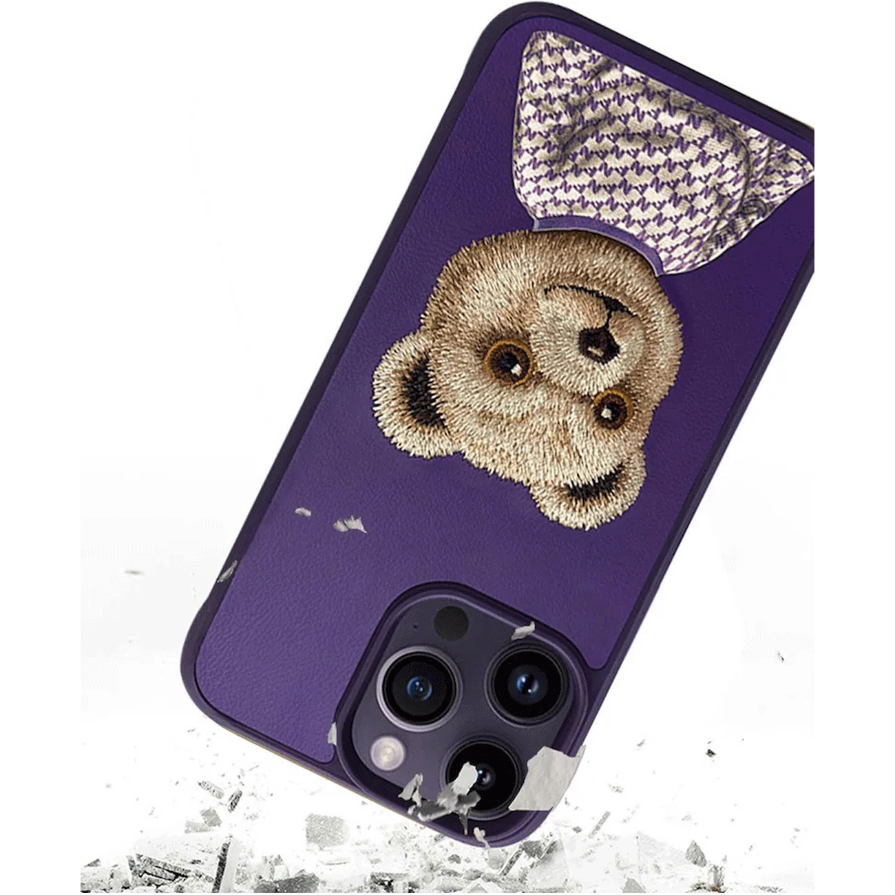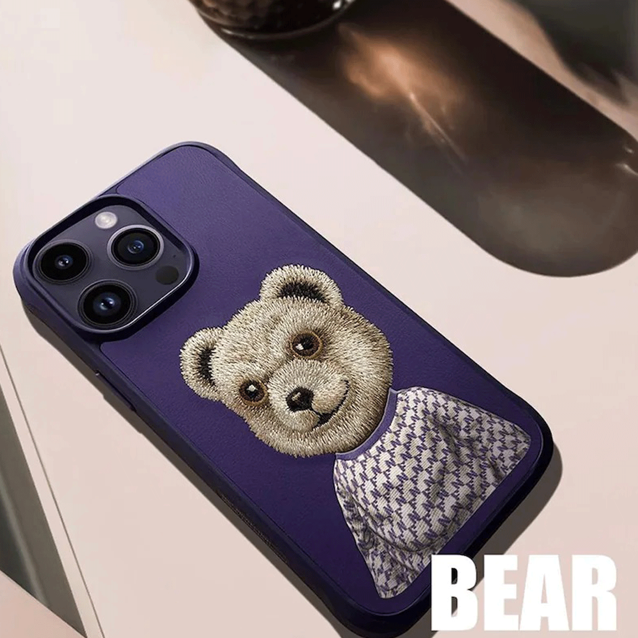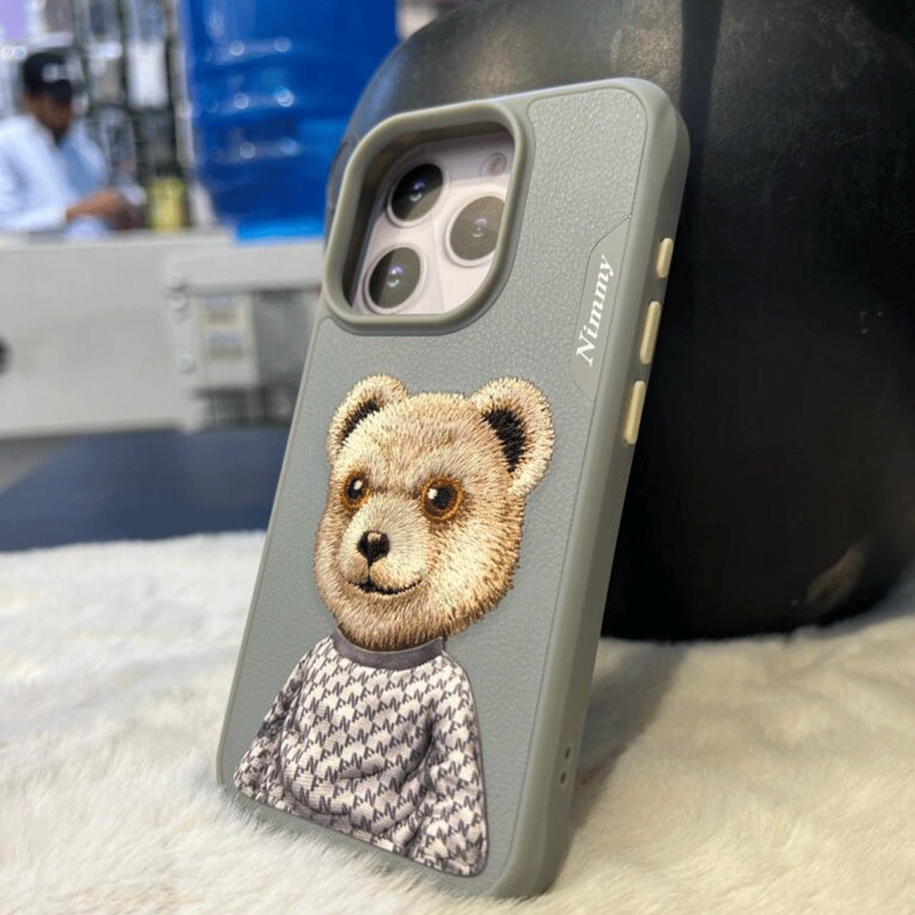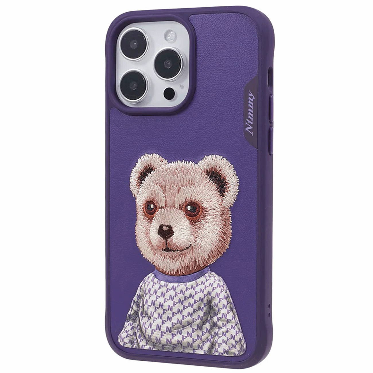 قاب محافظ گوشی آیفون 15 پرومکس طرح خرس با خز واقعی نیمی