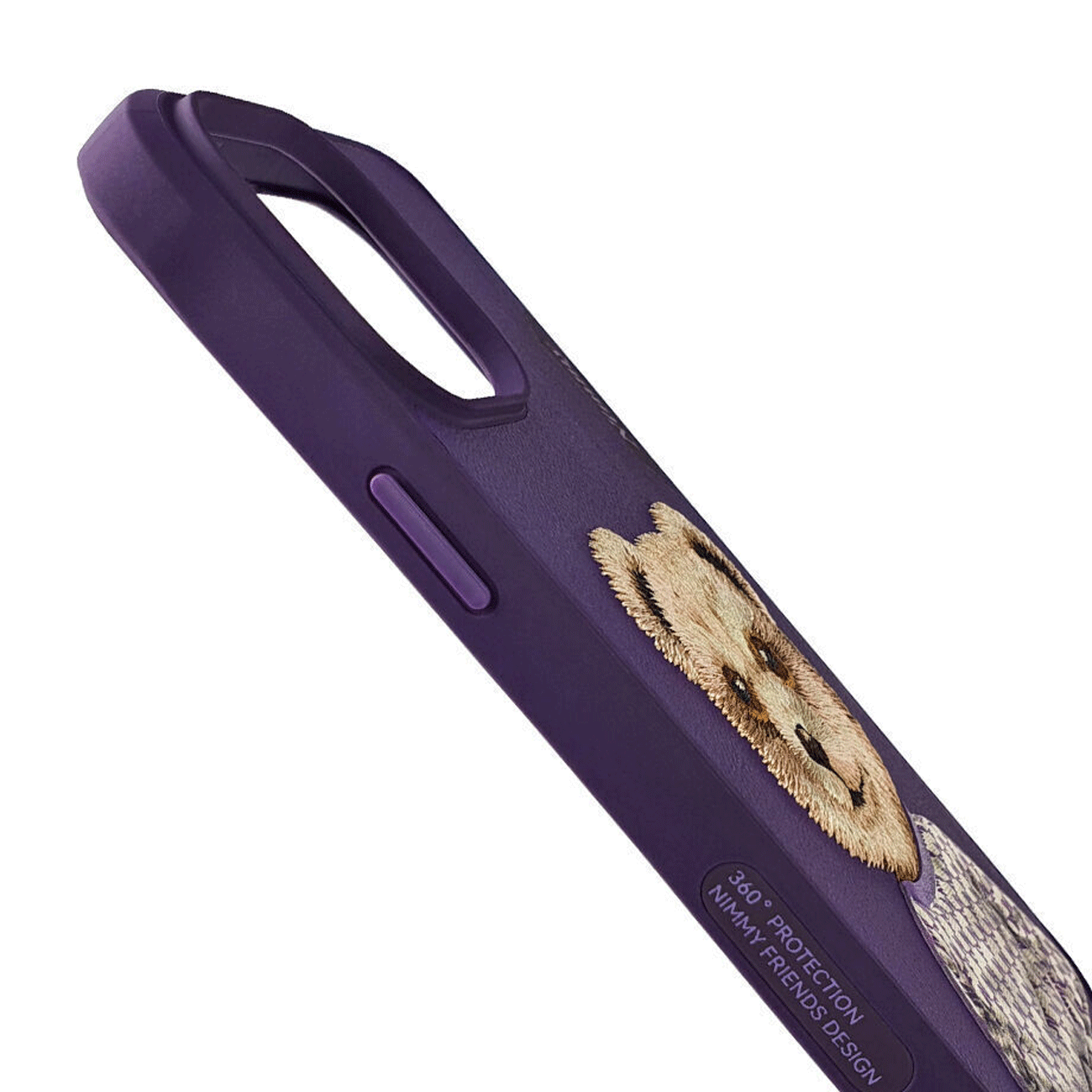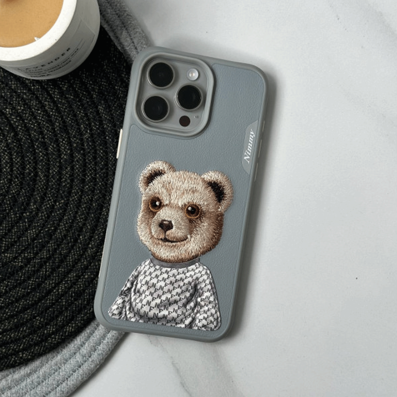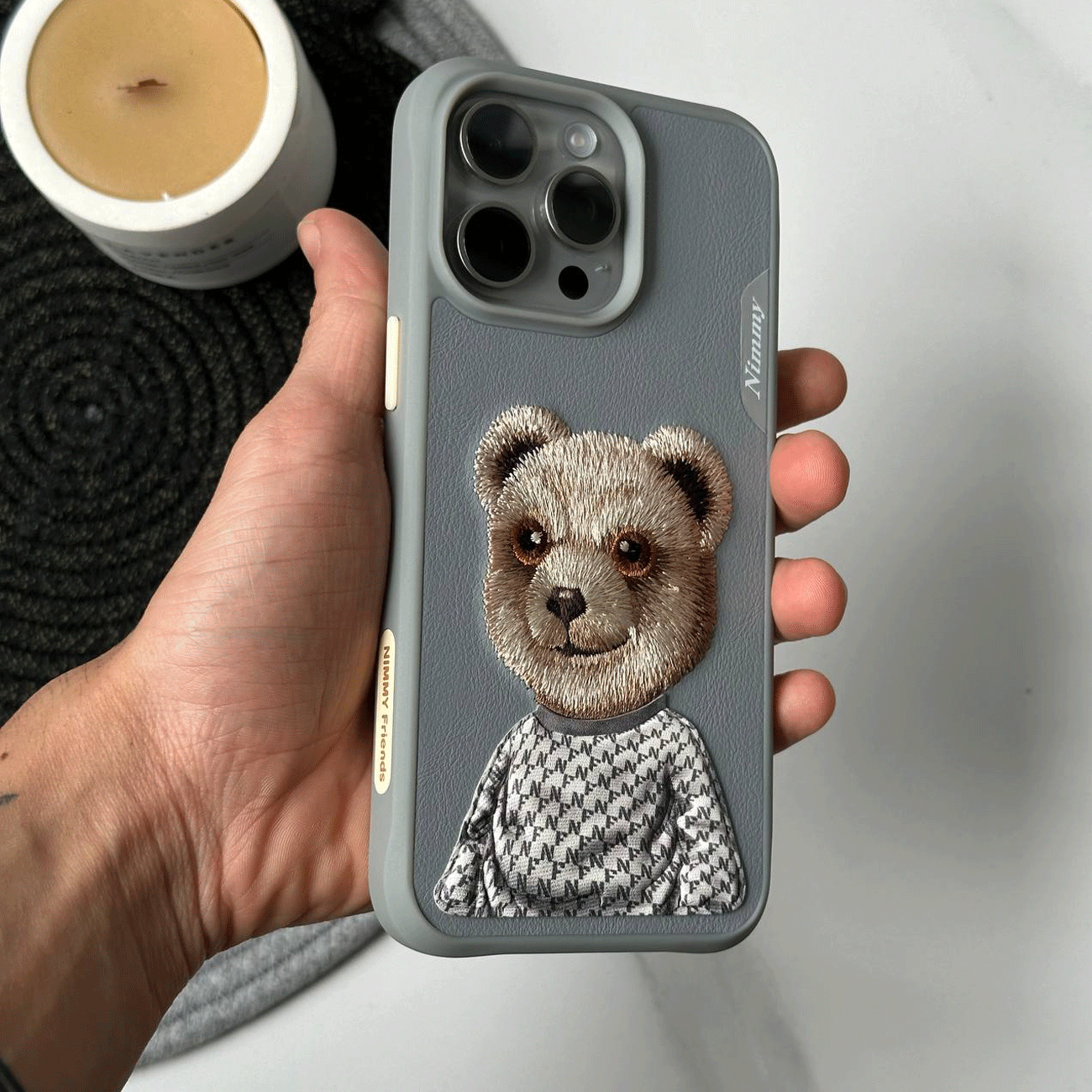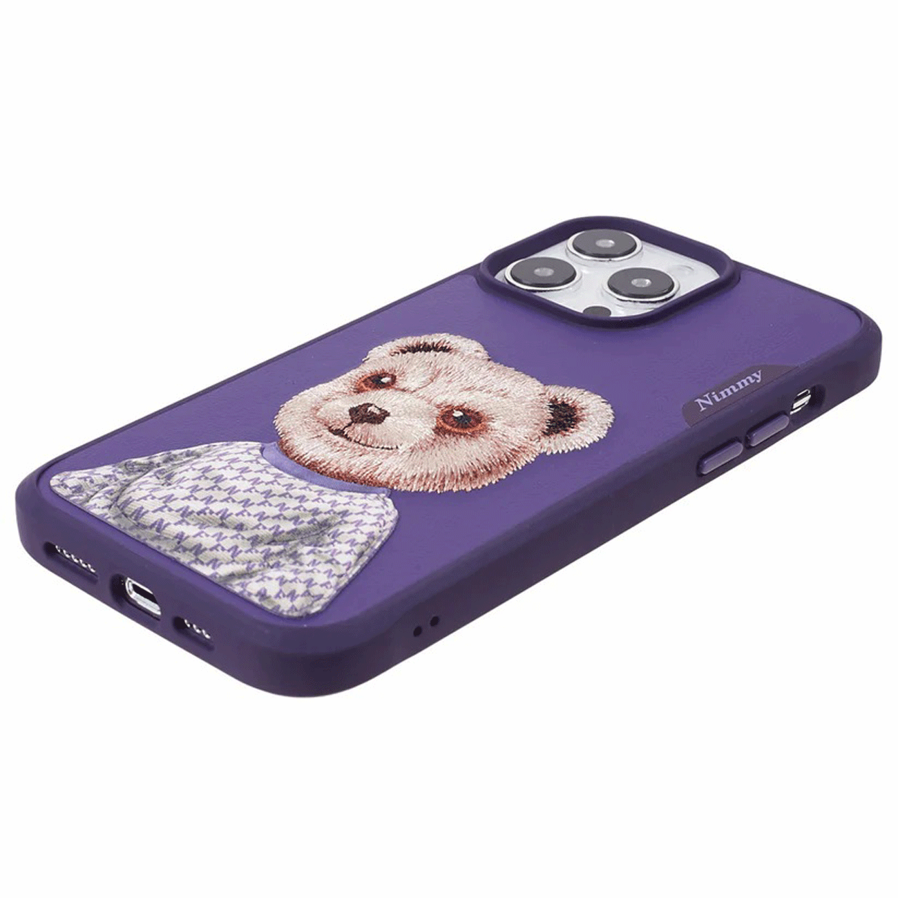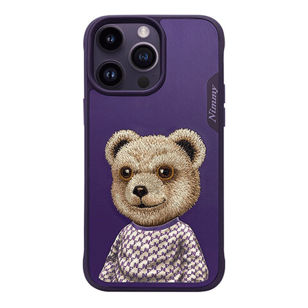 قاب محافظ گوشی آیفون 15 پرومکس طرح خرس با خز واقعی نیمی