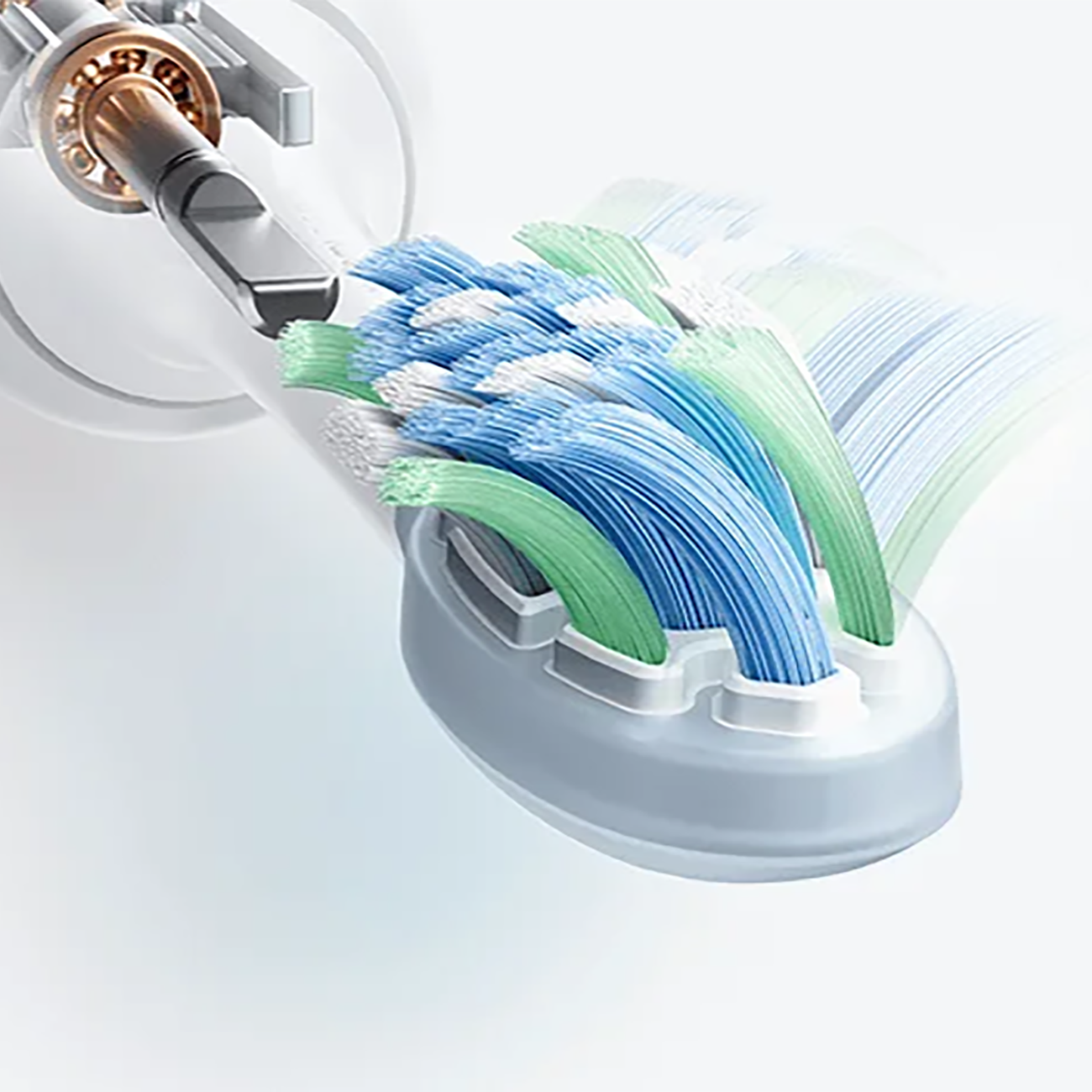 پوشش لاستیکی نرم در پشت مسواک برای تمیز کردن لثه و زبان | |
