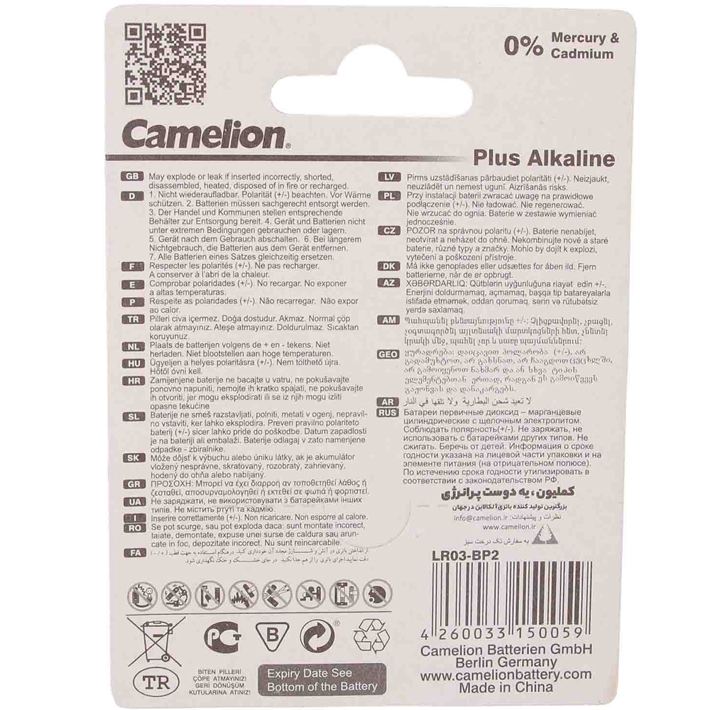 باتری نیم قلمی کارتی آلکالاین پلاس کملیون LR03-BP2 (2 عددی)