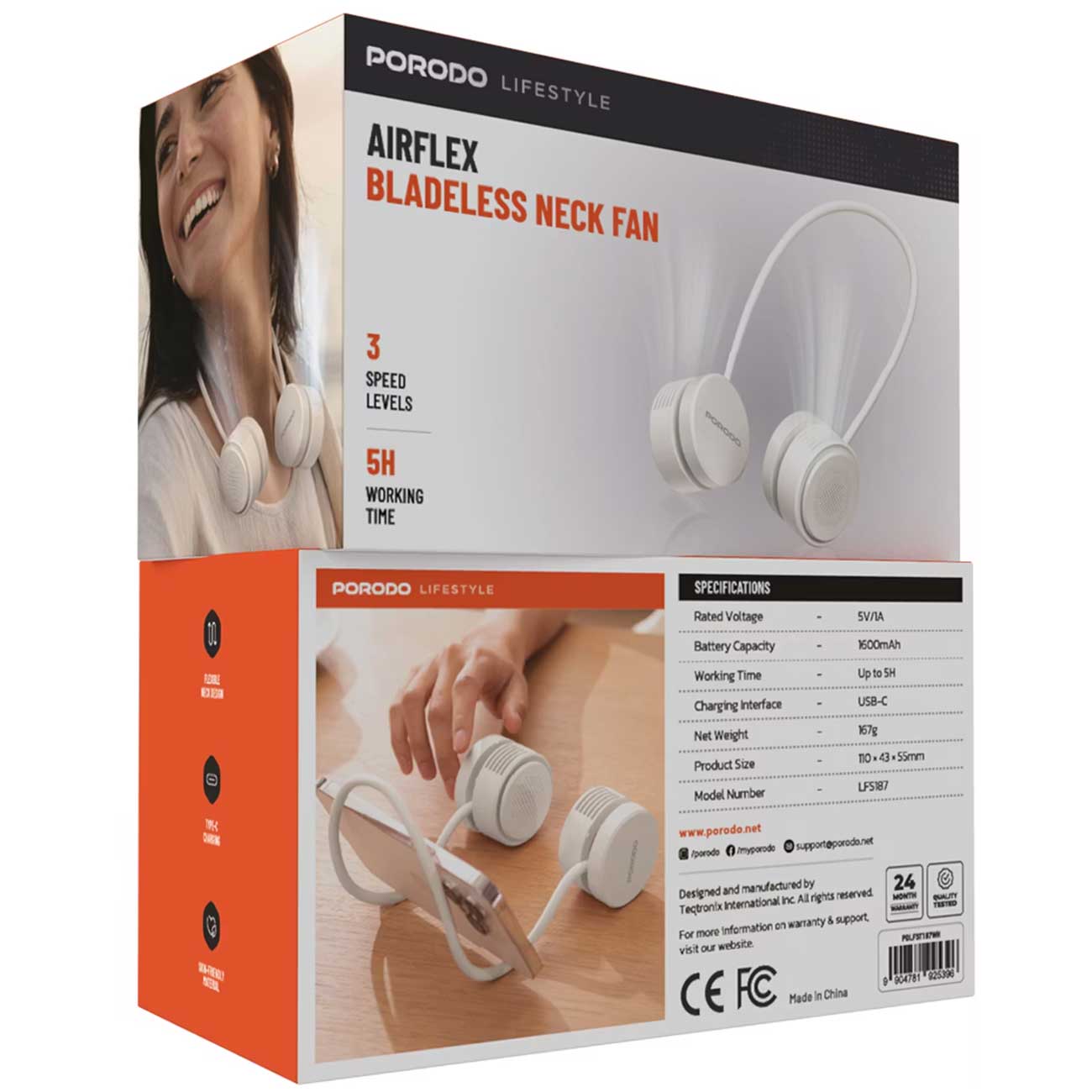 Porodo Lifestyle AirFlex Bladeless Neck Fan PDLFST187WH