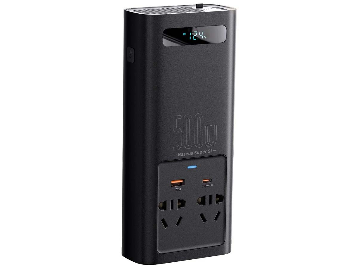 اینورتر و شارژر فندکی فست شارژ ماشین تایپ سی چند کاره 500 واتی بیسوس CGNB000101
