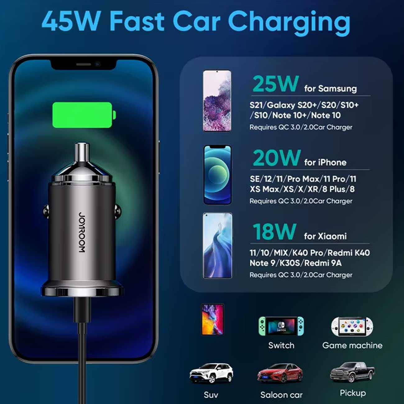 شارژر فندکی فست شارژ ماشین تایپ سی 45 وات جویروم C-A35