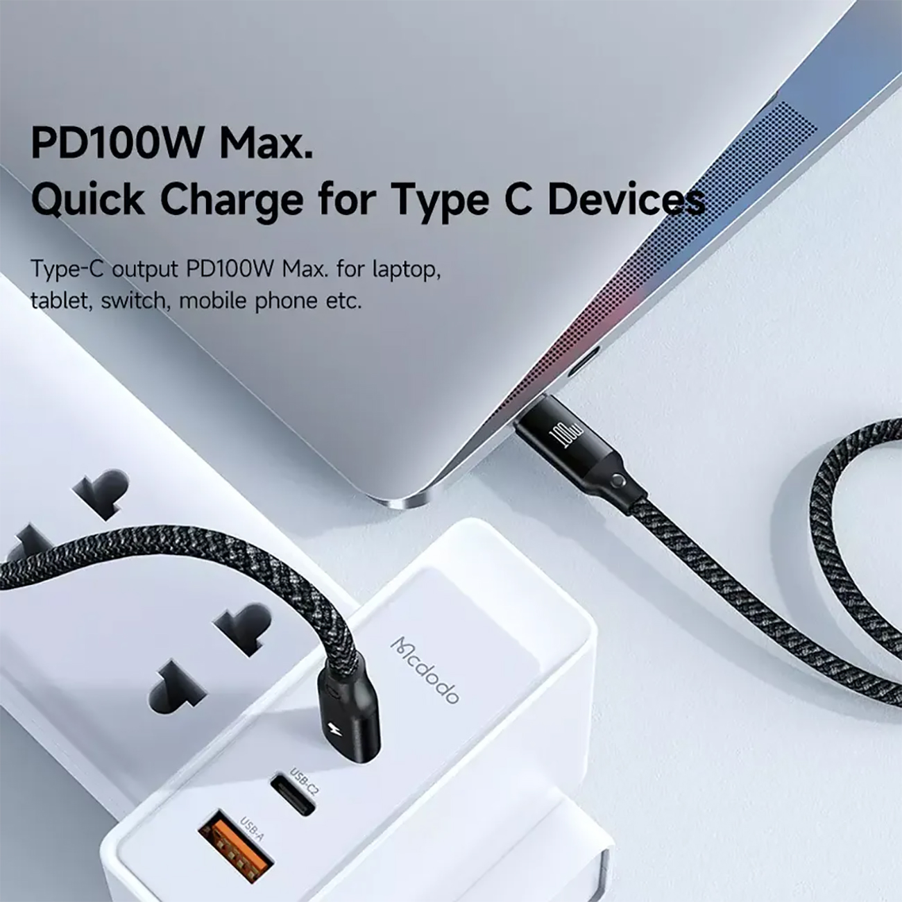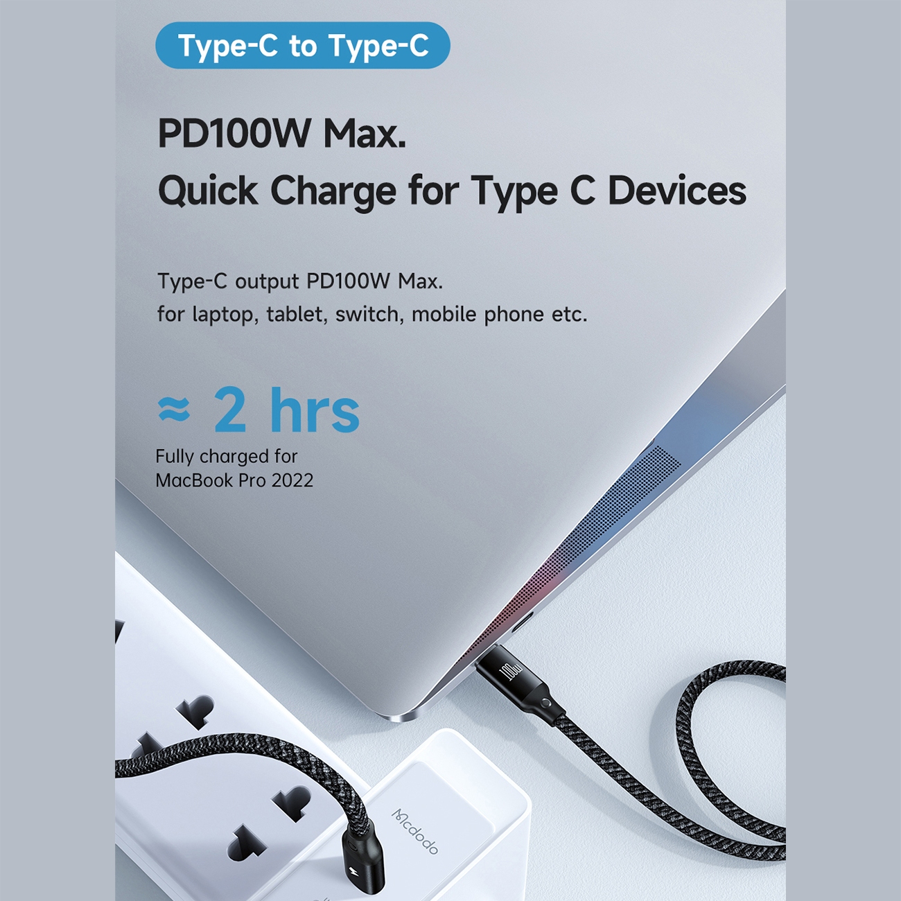 کابل فست شارژ چندکاره تایپ سی به تایپسی، لایتنینگ و وایرلس 1.2 متری 100 وات مک دودو CA-494