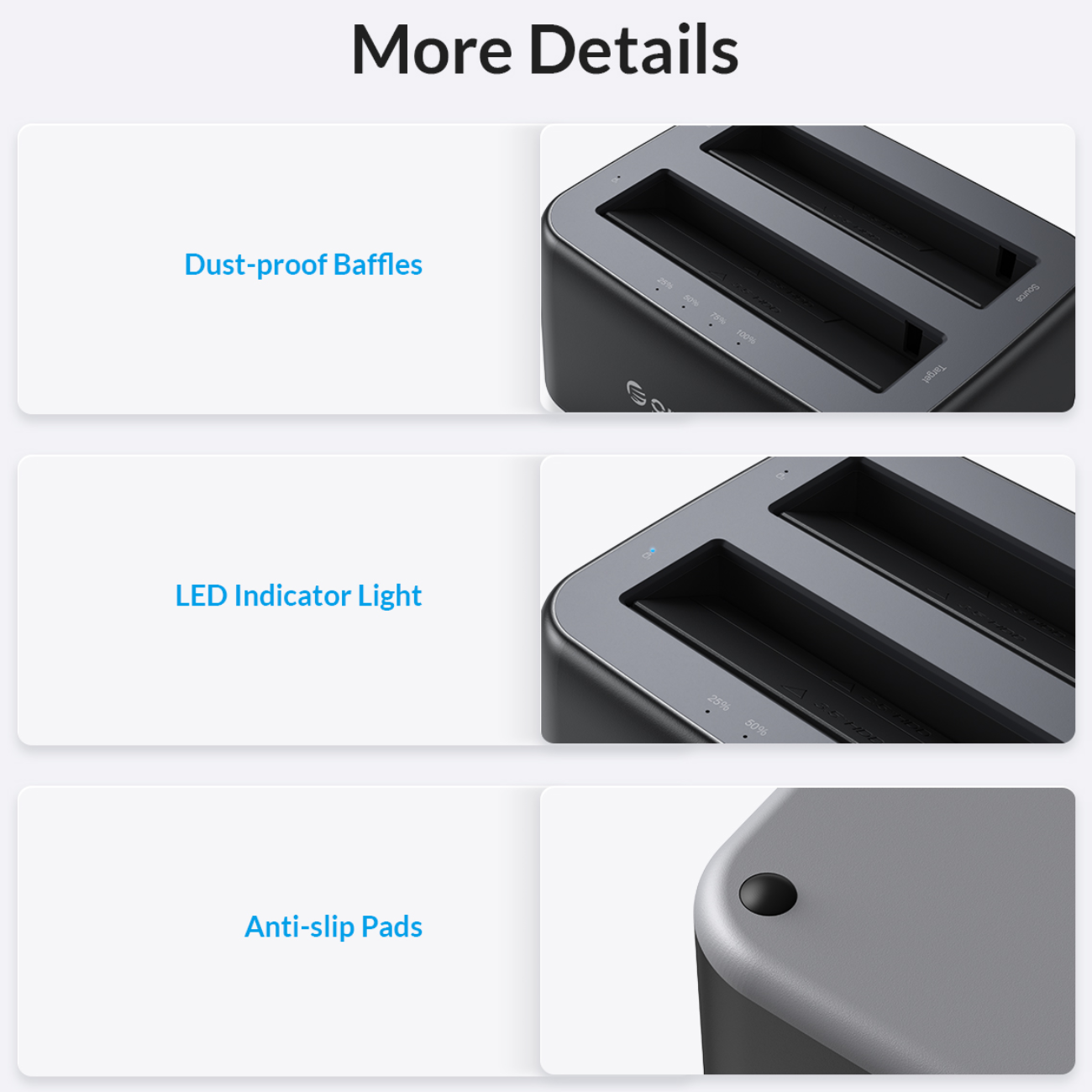 ORICO 2.5"/3.5" SATA HDD/SSD Dual-bay Dock with Offline Clone Function 6829C3-C