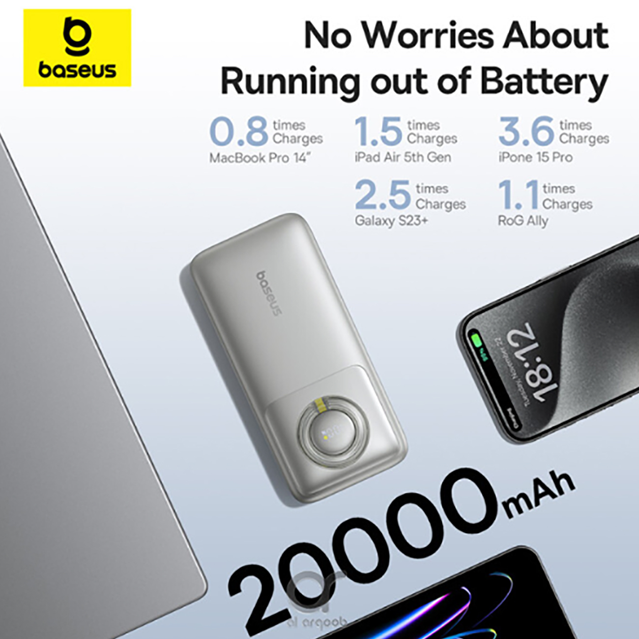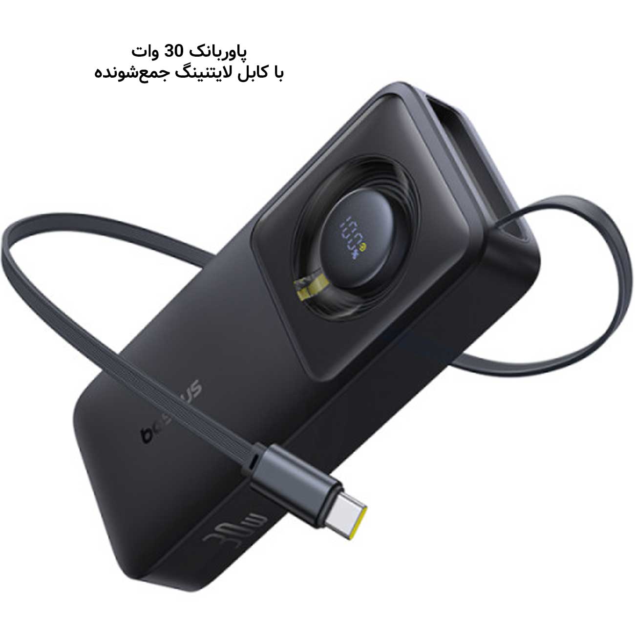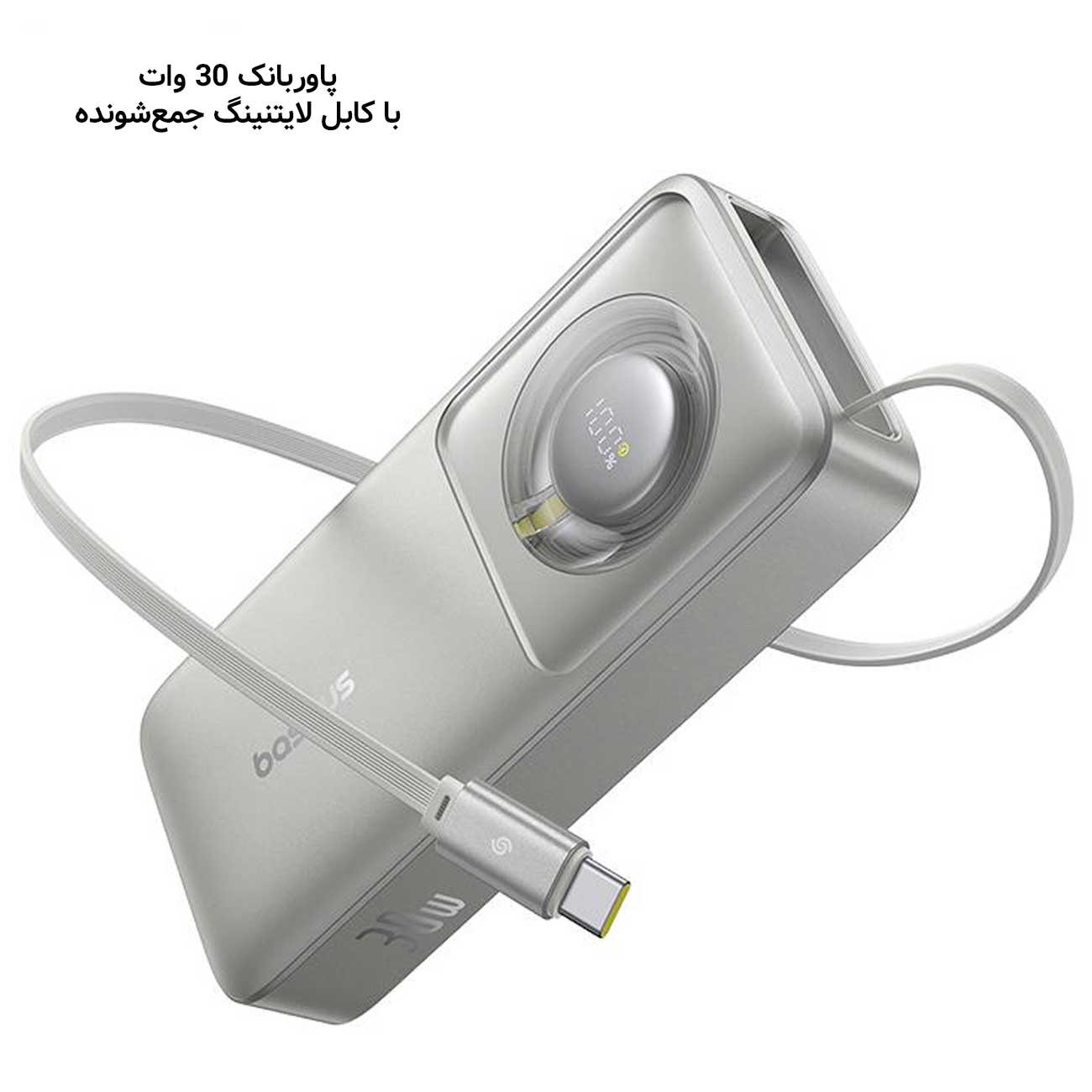پاور بانک فست شارژ 30 وات 20000 با کابل لایتنینگ بیسوس P10070902842-00