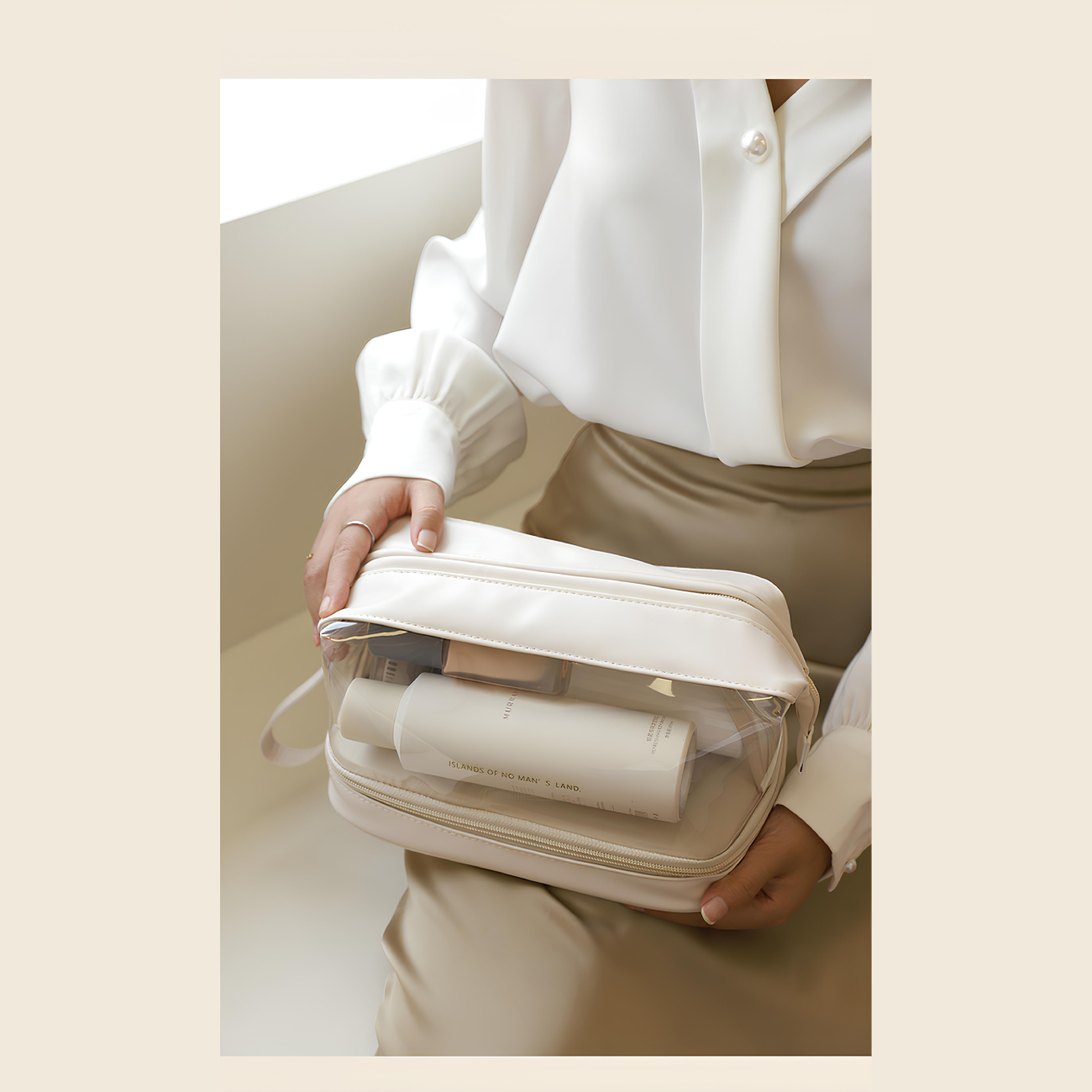 کیف لوازم آرایشی مسافرتی دو لایه ضدآب با ظرفیت زیاد Cloud Transparent