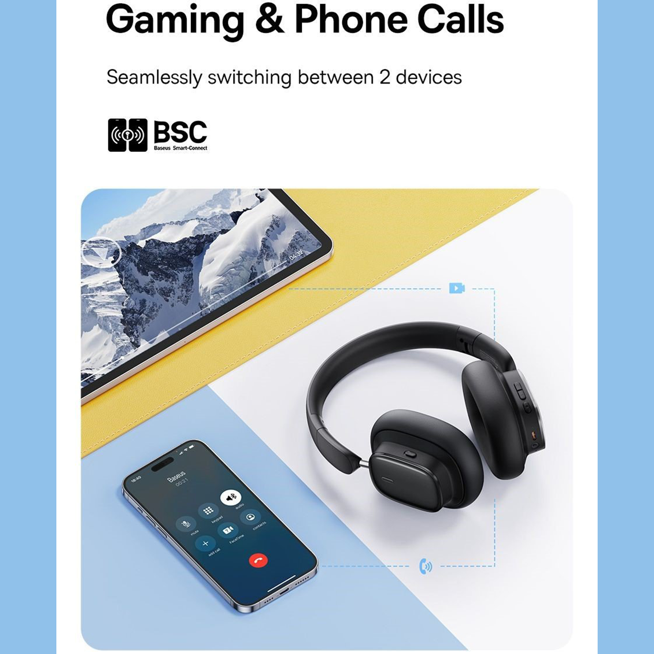 هدفون بلوتوثی 5.3 نویزکنسلینگ فعال بیسوس Baseus Bowie H1i