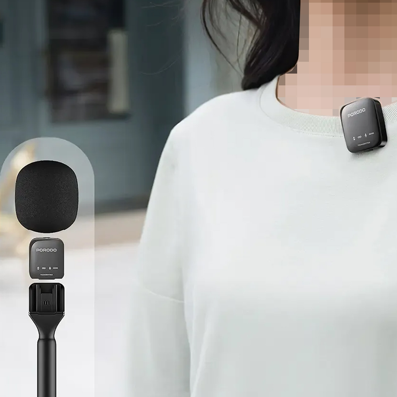 Porodo Two-Device Connect Handheld Lavalier Microphone PD-LFST133-BK-LFS133
