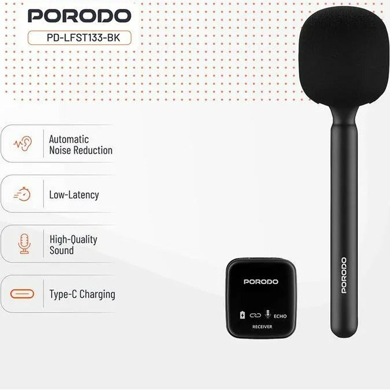 میکروفون بیسیم دستی پورودو Porodo PD-LFST133-BK با اتصال همزمان دو دستگاه