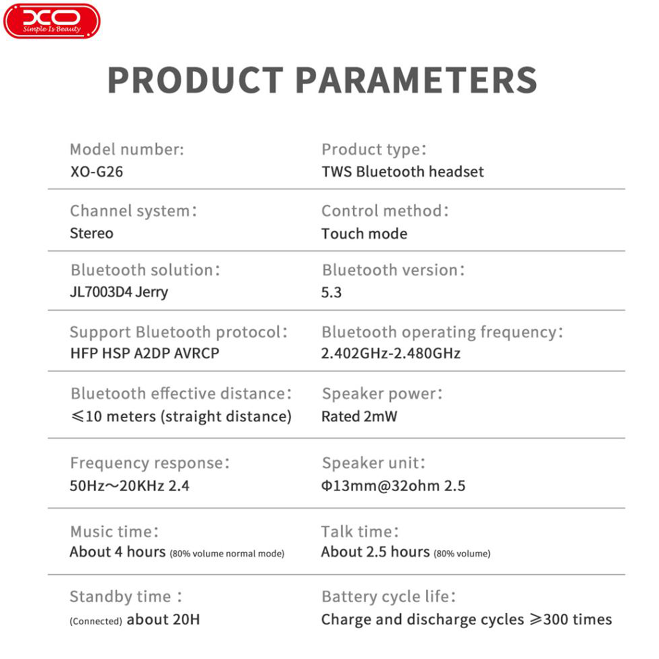 مدل | XO-G26 |