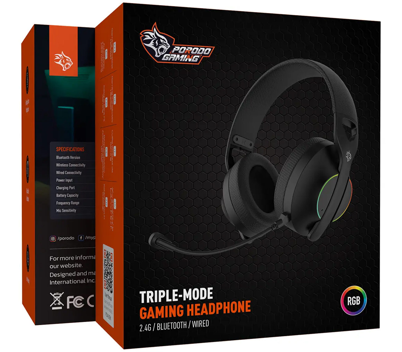 Porodo Triple-Mode Gaming HeadPhone PDX421-BK