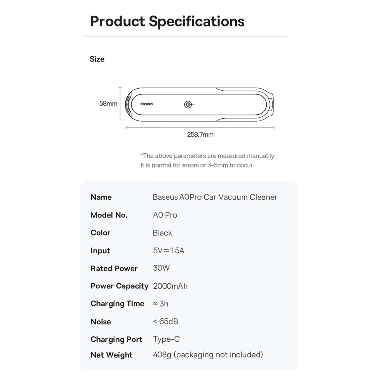 Baseus A0 Pro Car Vacuum Cleaner