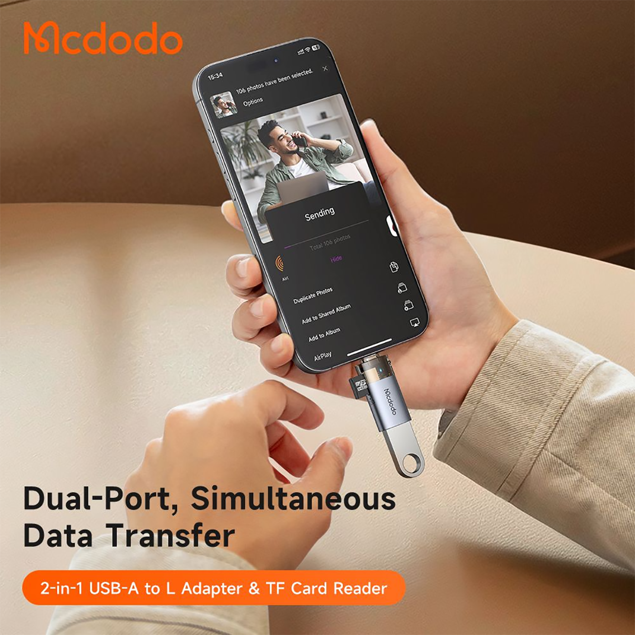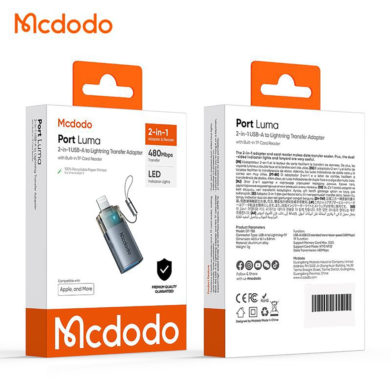 Mcdodo CA-760 OTG USB-A to Lightning Transfer Built in TF Card Reader Micro SD
