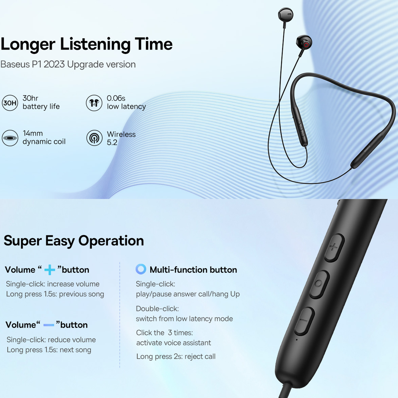 DZ-TM Baseus Bowie Series P1 Lite Semi-In-Ear Neckband Bluetooth Headphones A00025800114-Z1