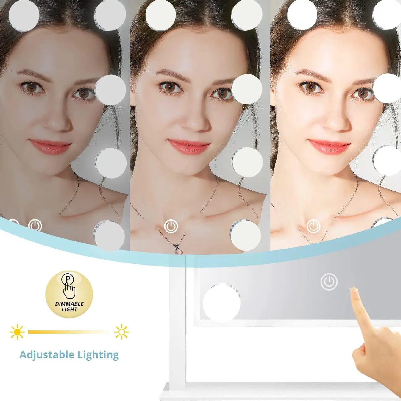 آینه چراغدار آرایشی رومیزی لمسی با 9 چراغ LED
