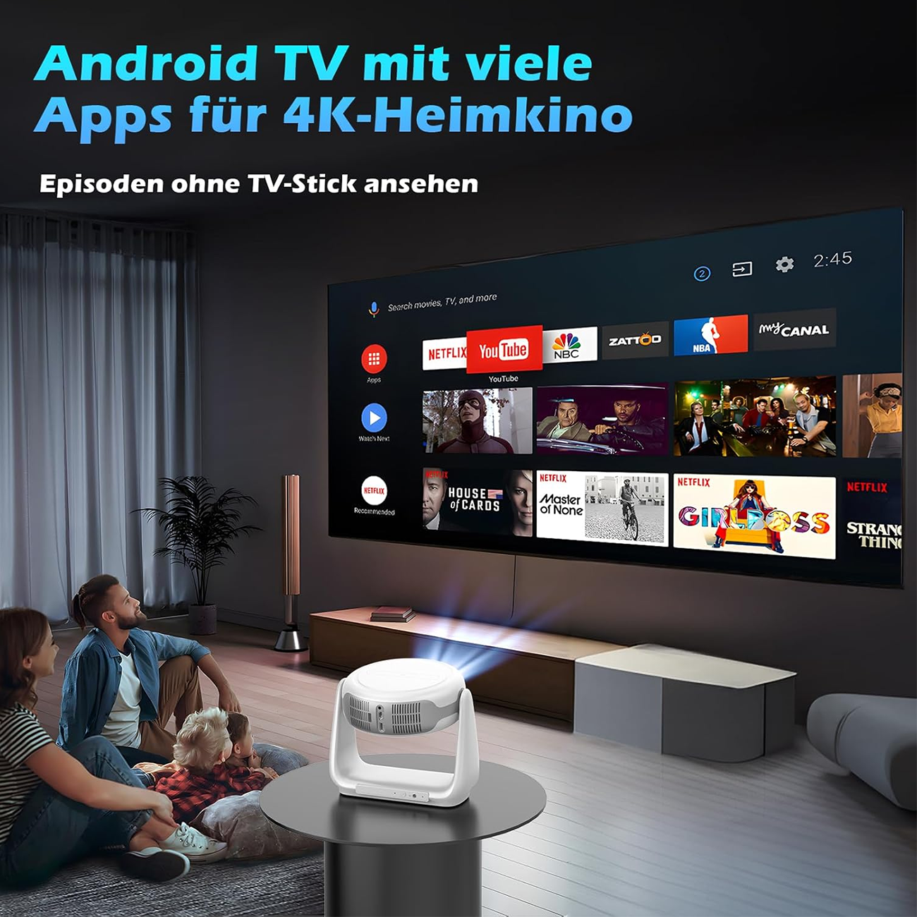 Projector Outdoor Projector with Auto Focus for Home Cinema, Supports 1080P Full HD and 4K