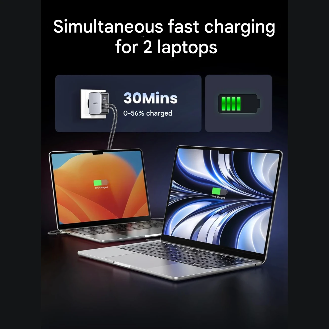 شارژر دیواری یواسبی و تایپسی فست شارژ 140 وات یوگرین Ugreen CD289 90549 با کابل دوسر تایپسی