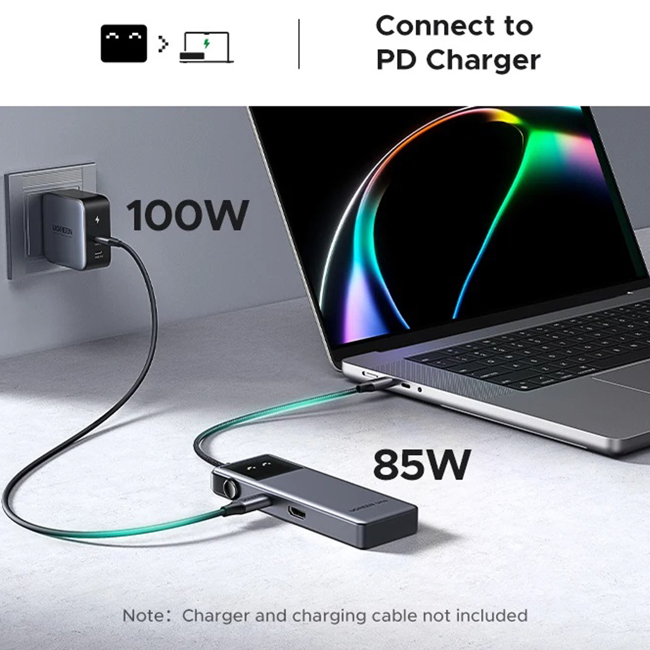 | پشتیبانی PD | تا 100وات ورودی (85W خروجی برای شارژ، 15W برای هاب و پورتها) |