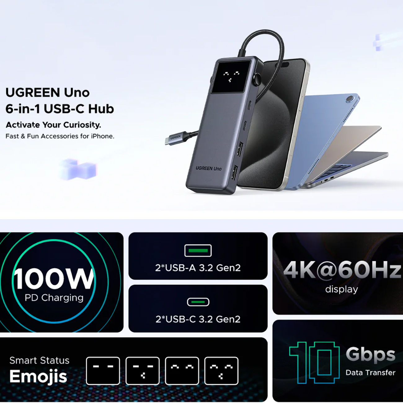 UGREEN Uno 6 in 1 USB3.0 Hub 4K 60Hz USB-C CM888 35998