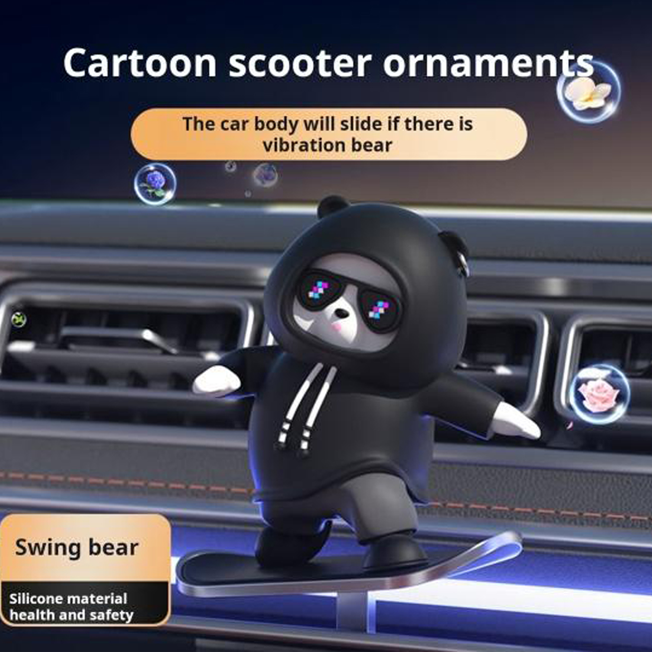 عروسک ماشین لاندری L'ANDRE Car Decorations طرح خرس اسکیت سوار