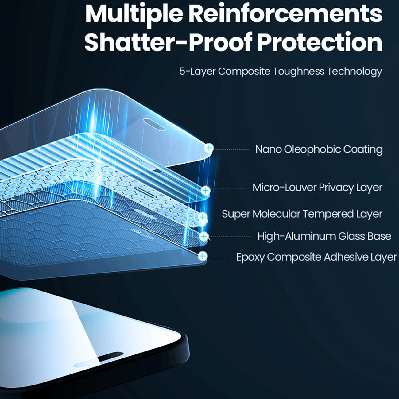 | لایهها | نانو اولئوفوبیک، میکرولوور حریم خصوصی، فوق مولکولی سخت شده، شیشه آلومینیوم بالا، چسب کامپوزیت اپوکسی |
