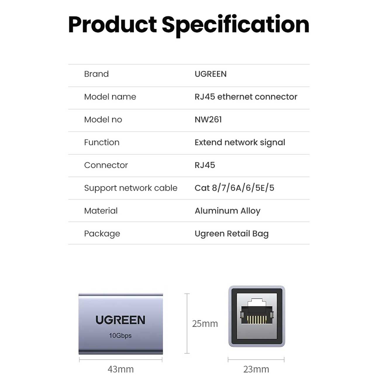 ugreen NW261 15117 RJ45 10 Gbps Ethernet Cable Extender Adapter