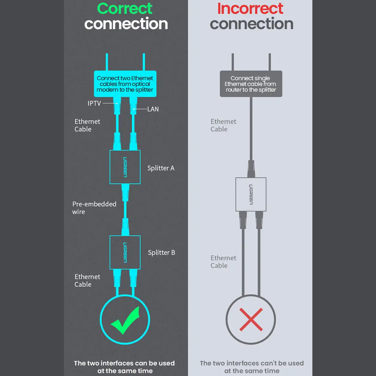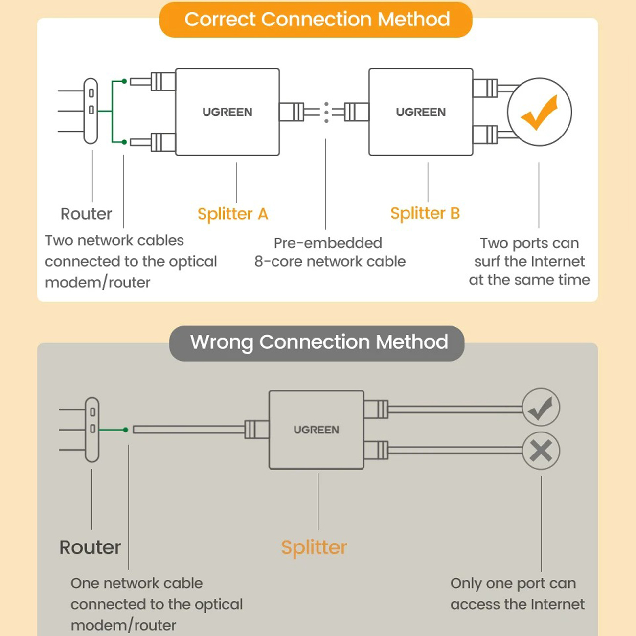 Ugreen CM210 (50923) RJ45 Female To Female Ethernet Splitter 1 In 2 Out,