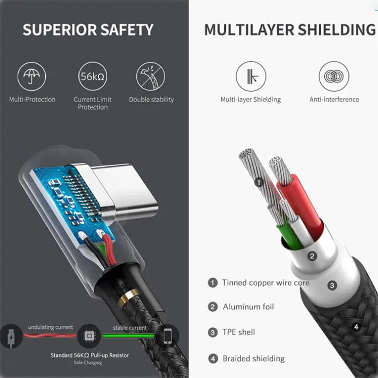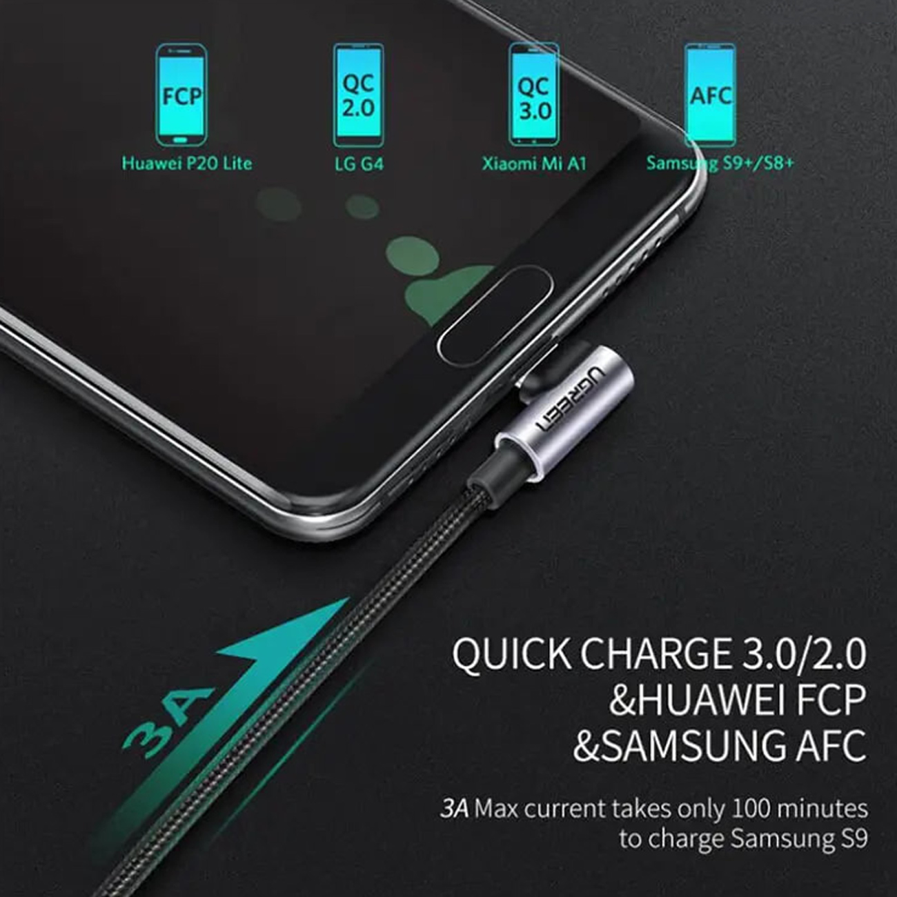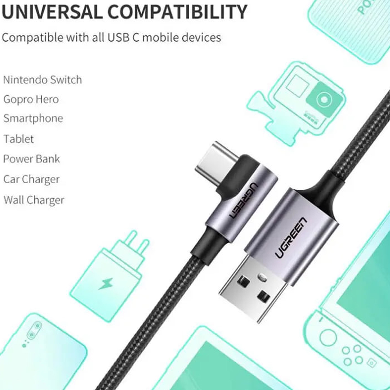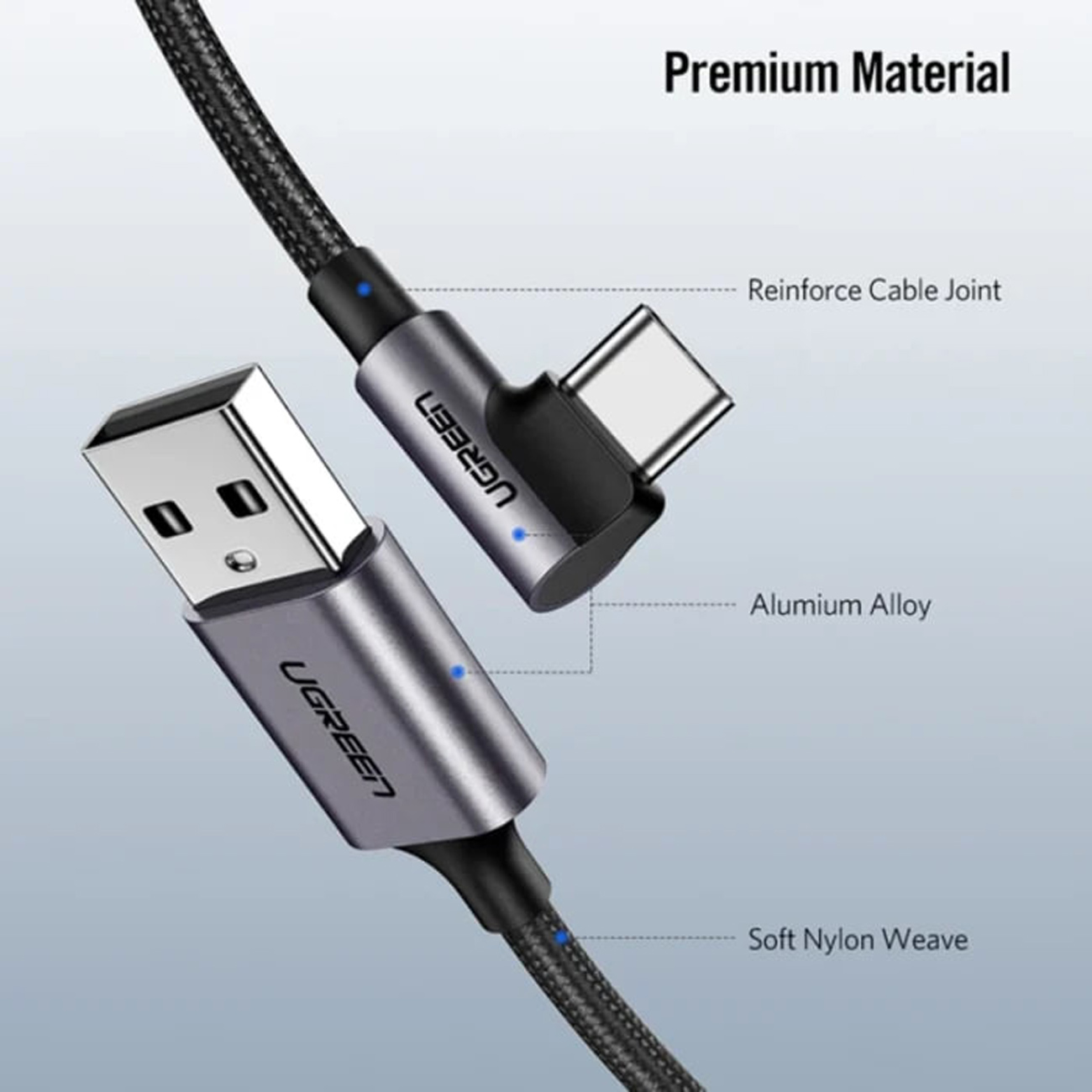 UGREEN US284 Right Angle USB-A to USB-C Cable 1m-50942