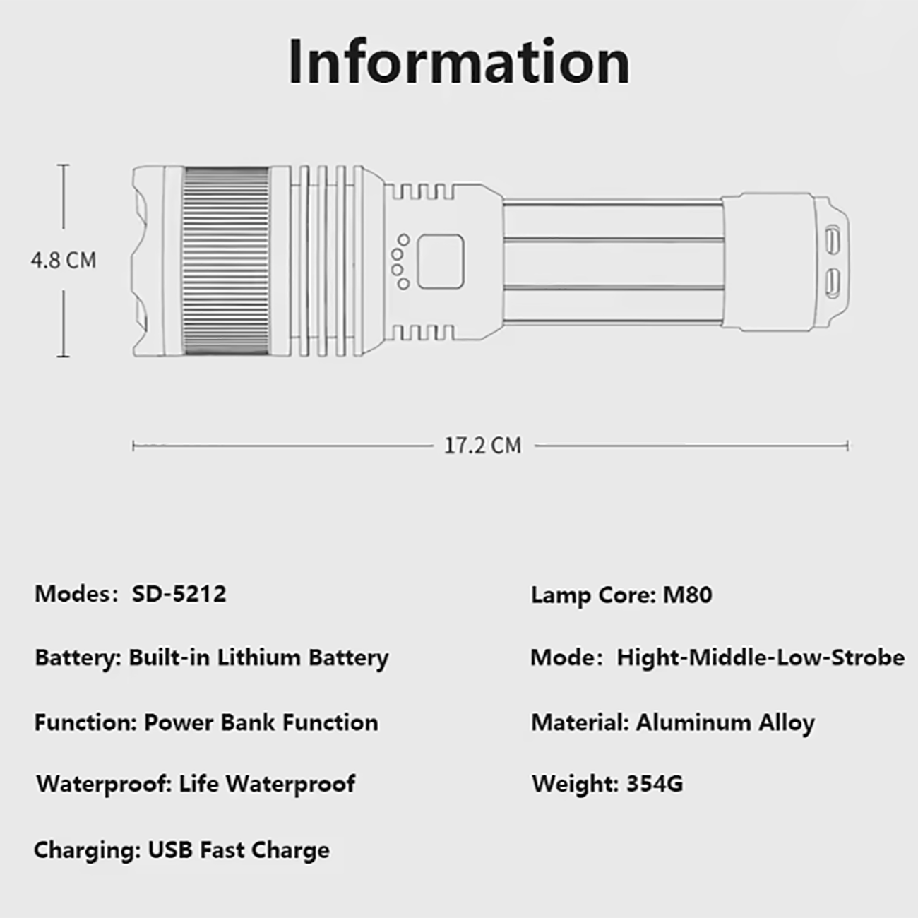 Smiling Shark SD5212 Powerful Flashlight 6000lumens Torch Light Super