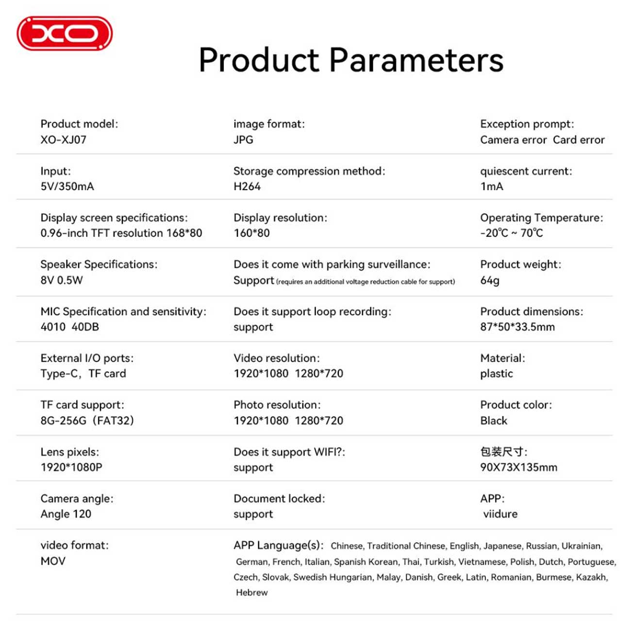 دوبین ثبت وقایع خودرو ایکساو XO XJ07