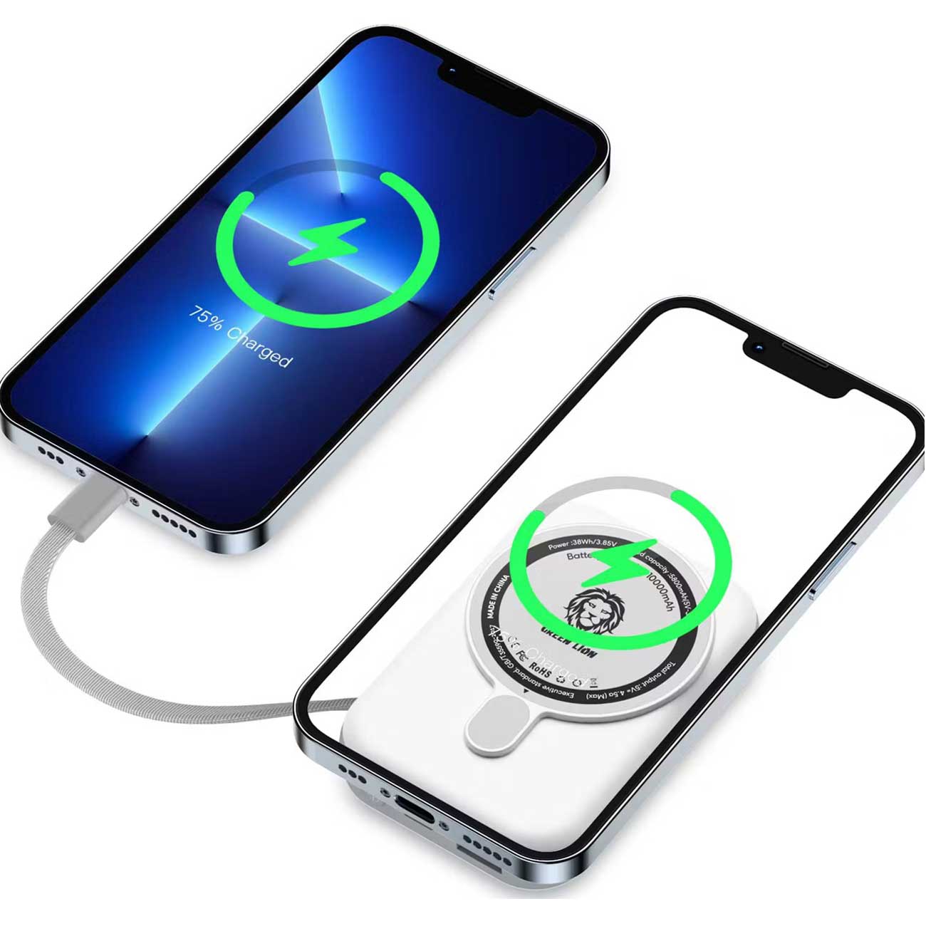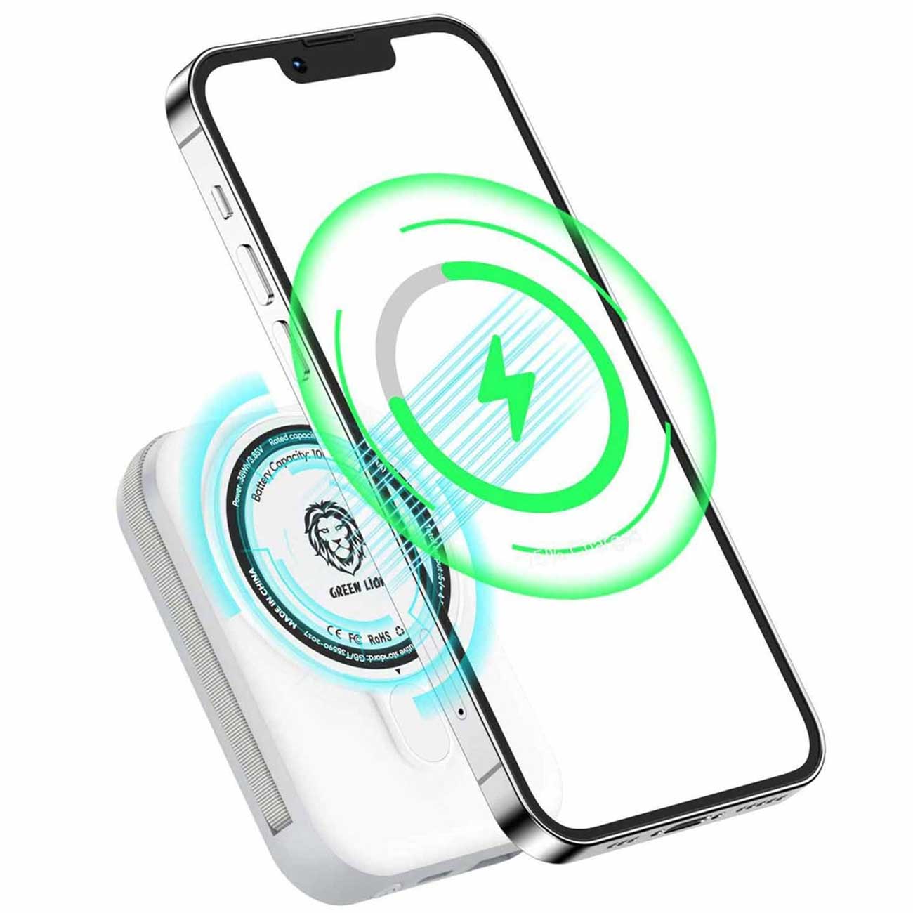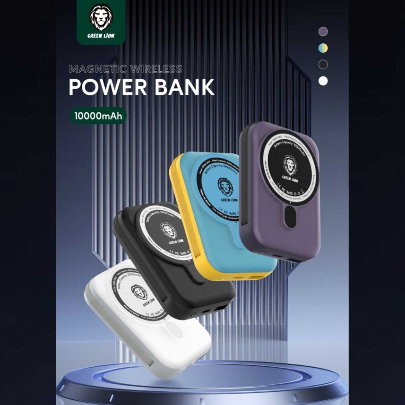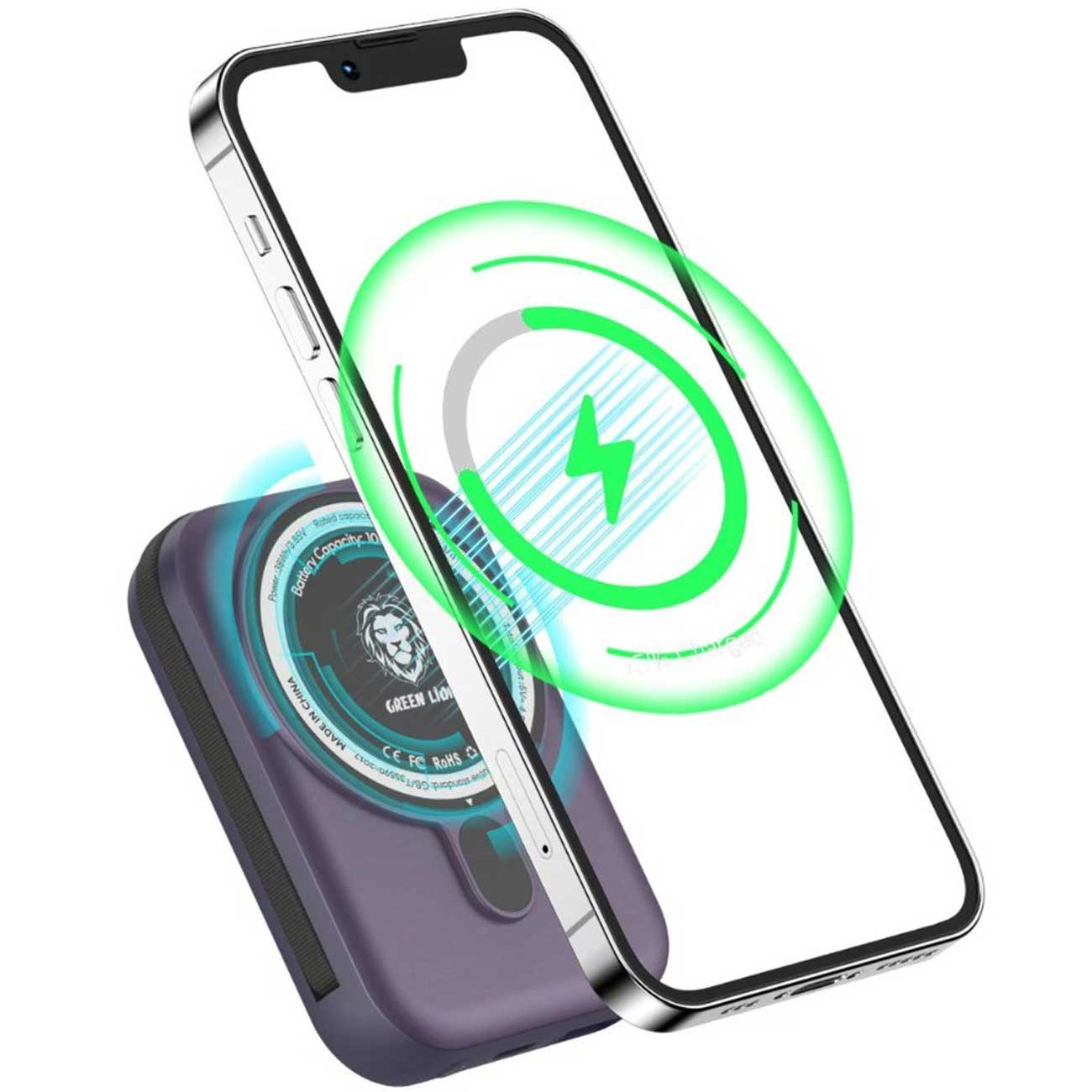 پاوربانک 10000 وایرلس 15 وات، تایپسی و USB گرینلاین GNMGMPB10K با کابل متصل لایتنینگ
