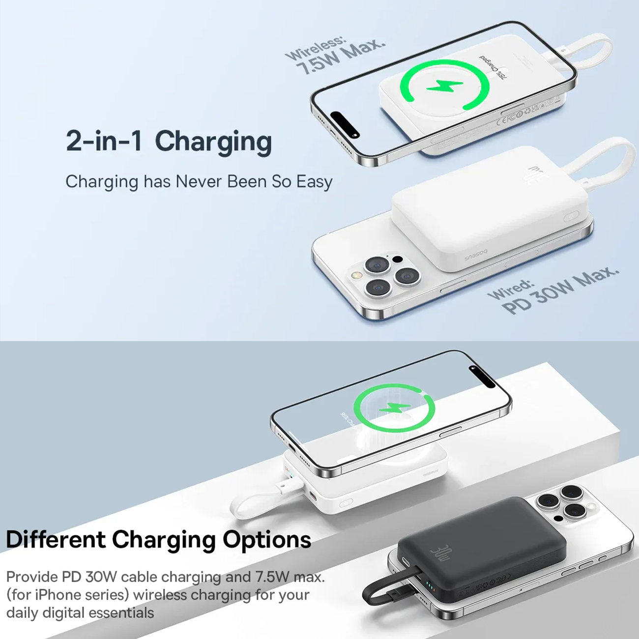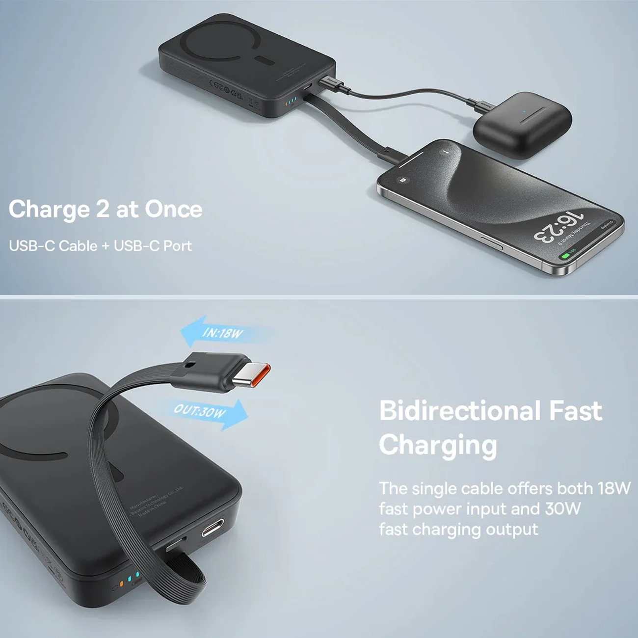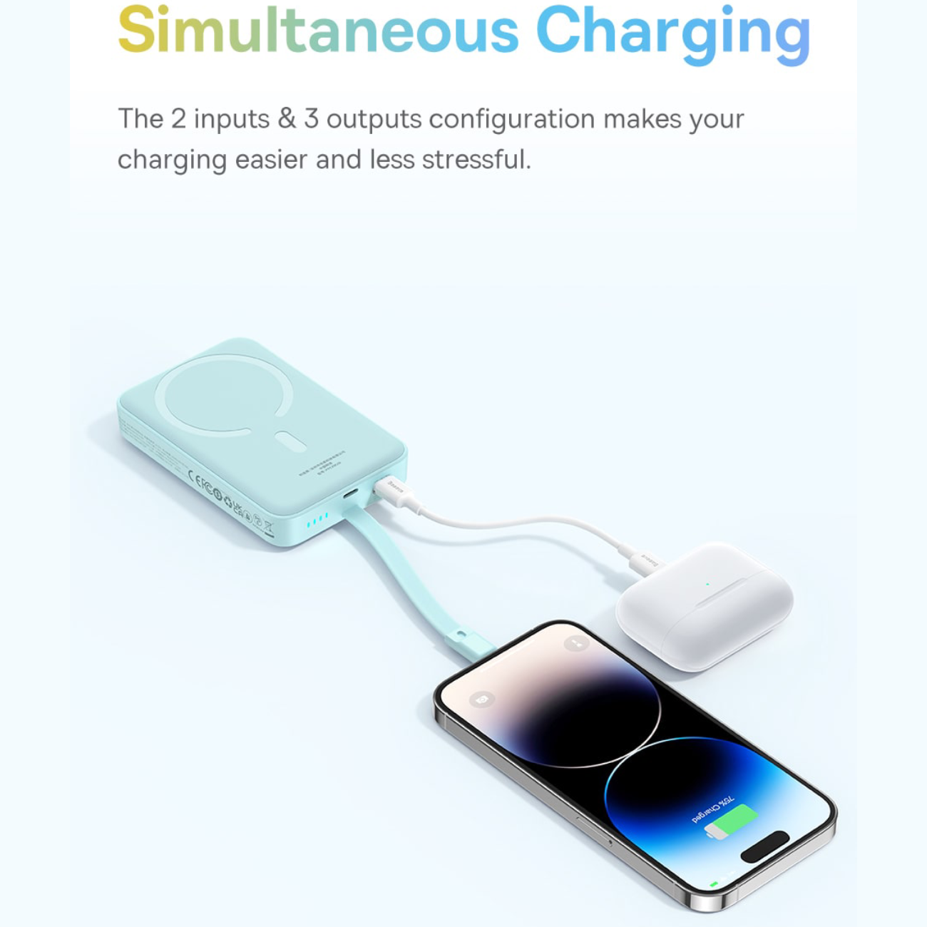| توان خروجی | USB-C: 5V/3A; 9V/3A; 12V/2.5A; 15V/2A Type-C Cable: 5V/3A; 9V/3A; 12V/2.5A; 15V/2A Wireless: 5W/7.5W/10W/15W |