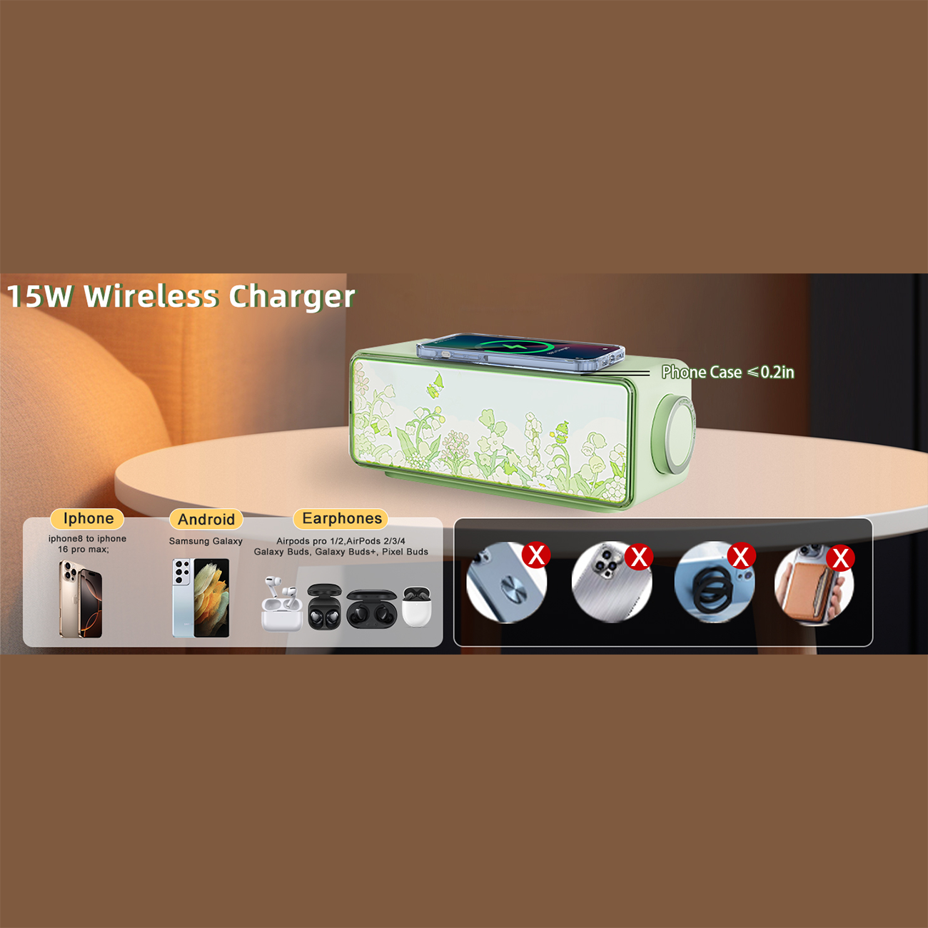 Bluetooth 5.3 speaker, night light and 15-watt wireless charger PAINTING LIGHT SPEAKER F05