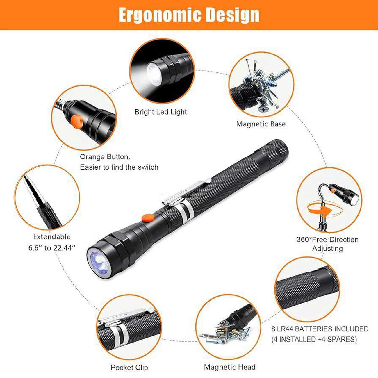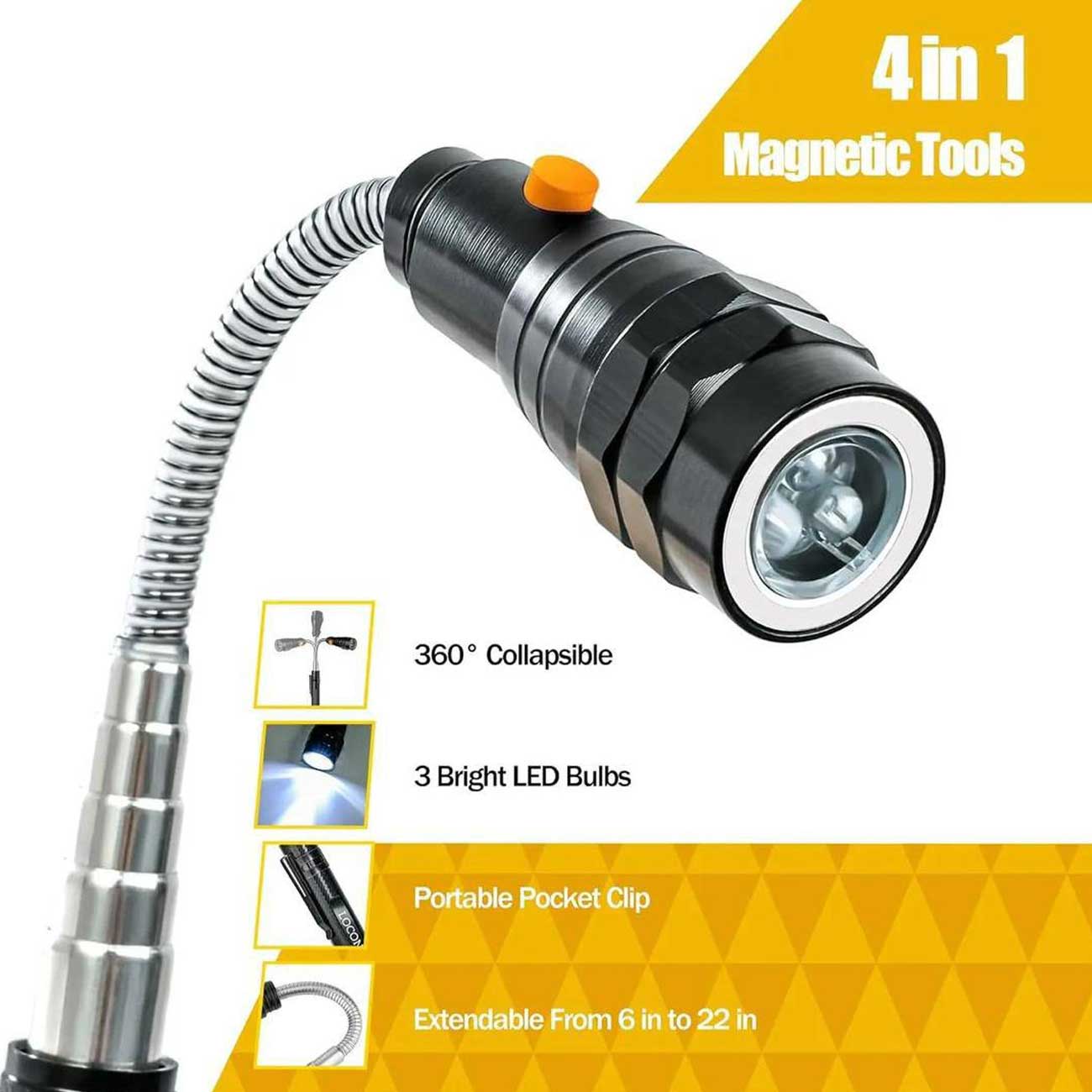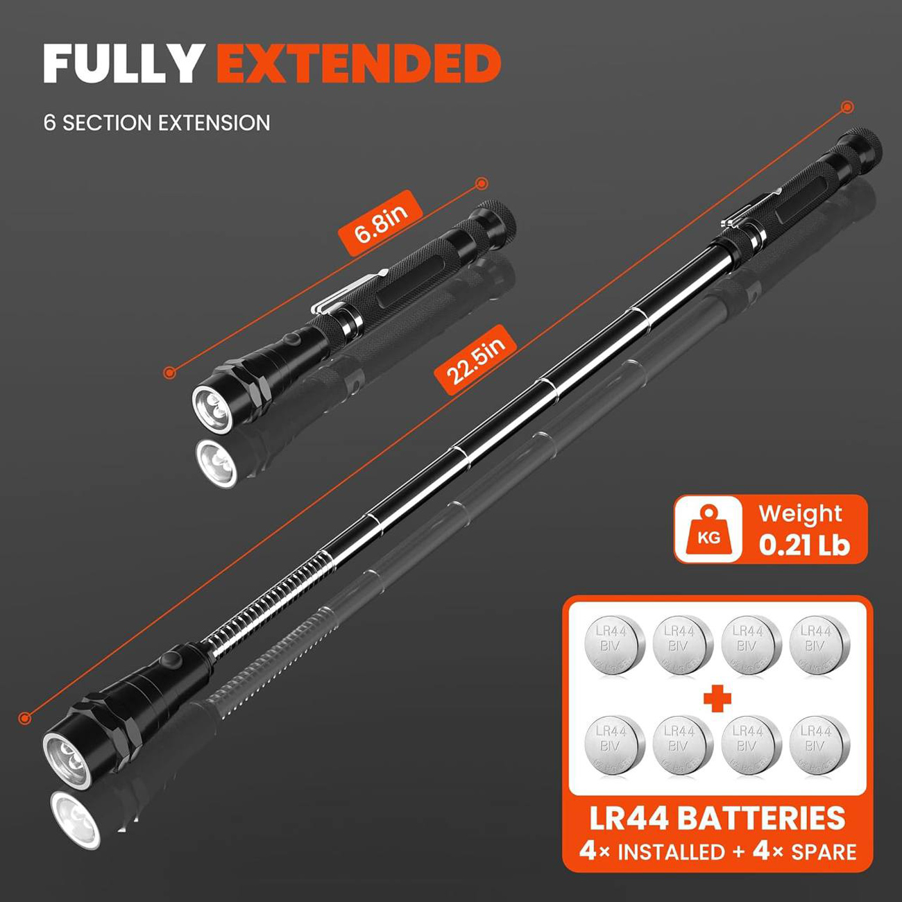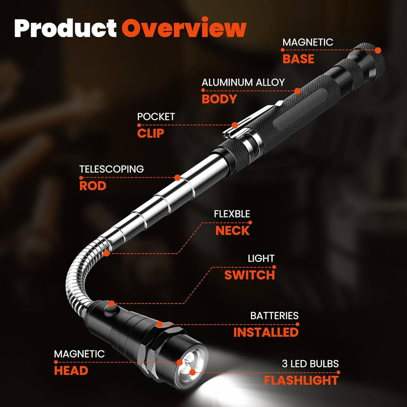 delivers flexible, telescopic lighting with a strong magnetic bas