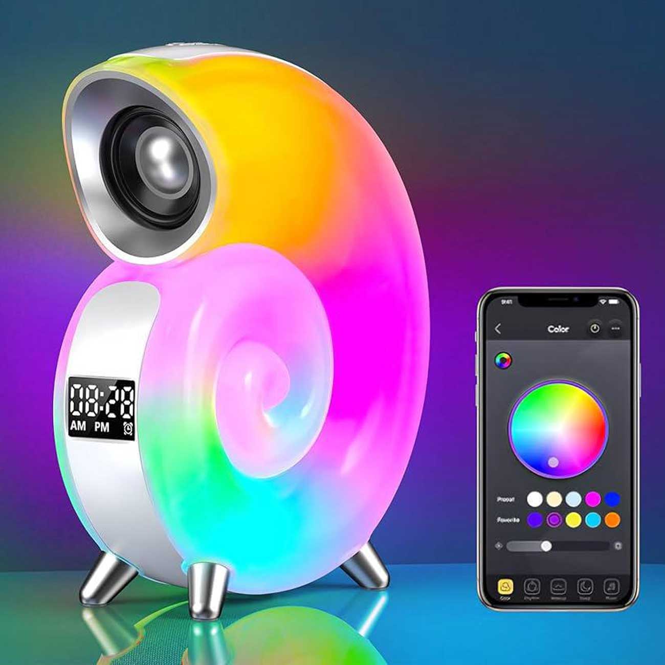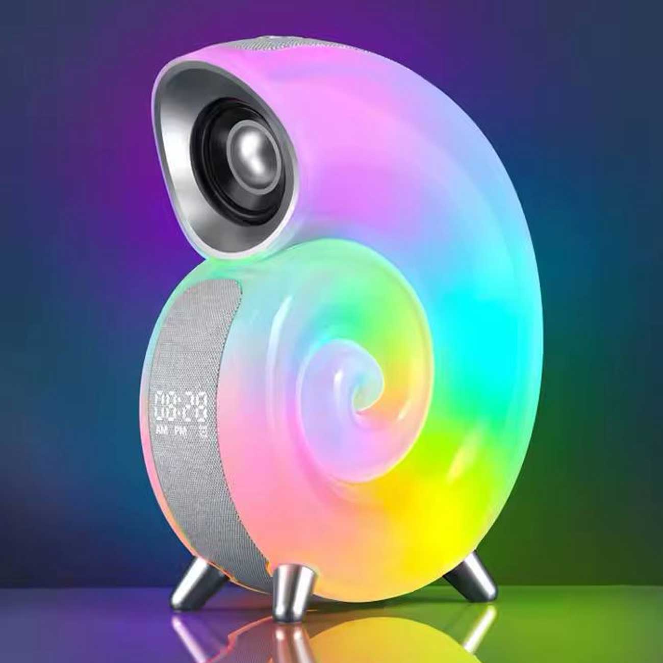 اسپیکر بلوتوثی شارژی حلزونی RGB دار - چراغخواب و ساعت زنگدار