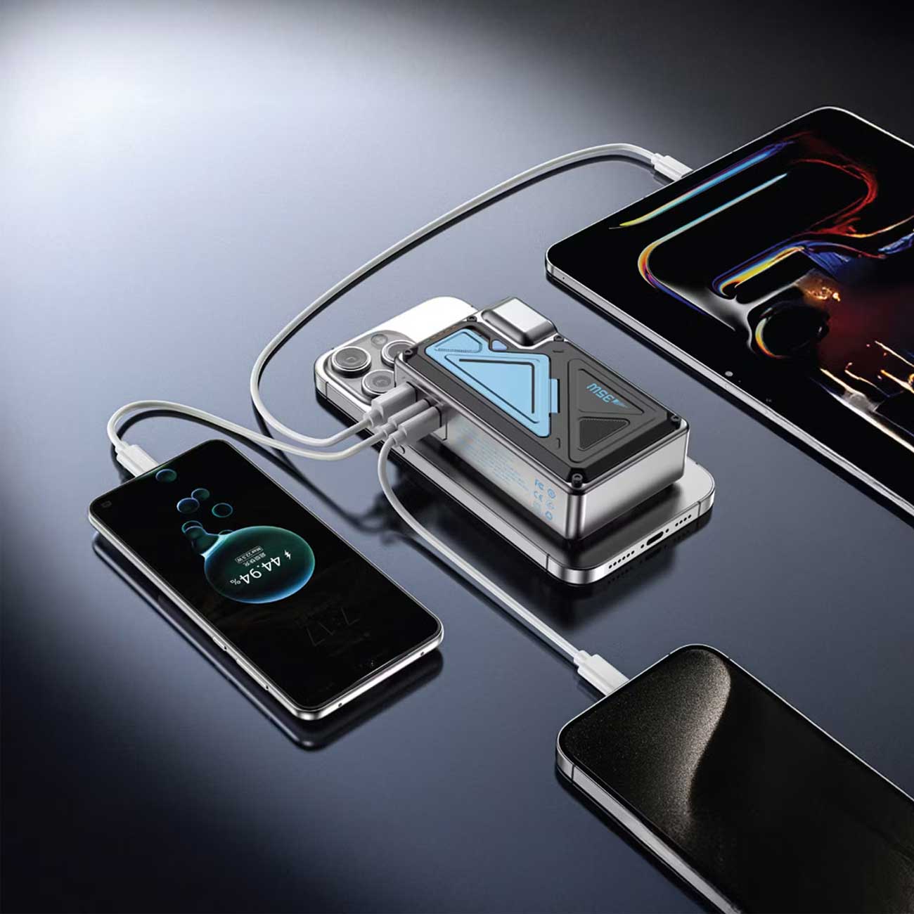 | امکانات و قابلیتها | ترکیب پاوربانک و شارژر دیواری، کابل داخلی، دوشاخه EU و UK، شارژ همزمان 4 دستگاه، سیستم ایمنی چندلایه، استانداردهای CE/FCC/RoHS |