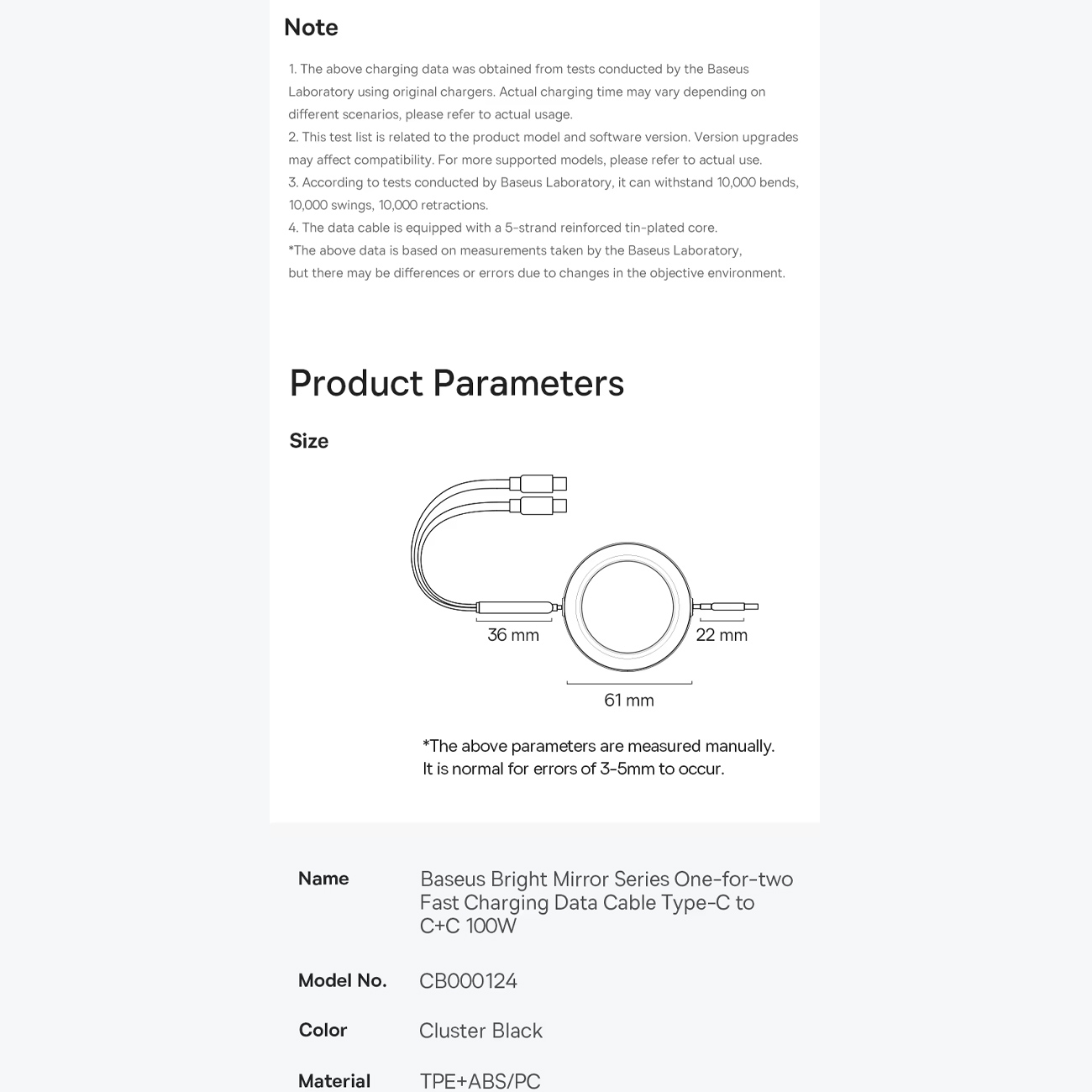 Baseus PD Cable Bright Mirror Series Type-c to Dual Type-c 100w CB000124/P10318602111
