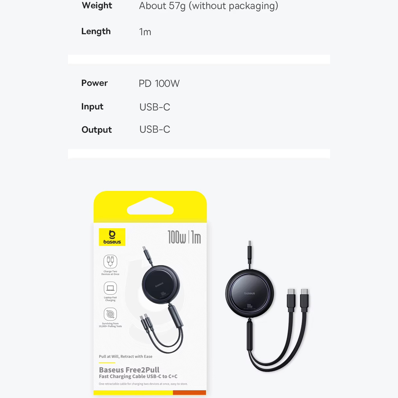 کابل جمع شونده تایپ سی به دو تایپسی 100 وات یک متری بیسوس Baseus CB000124/P10318602111