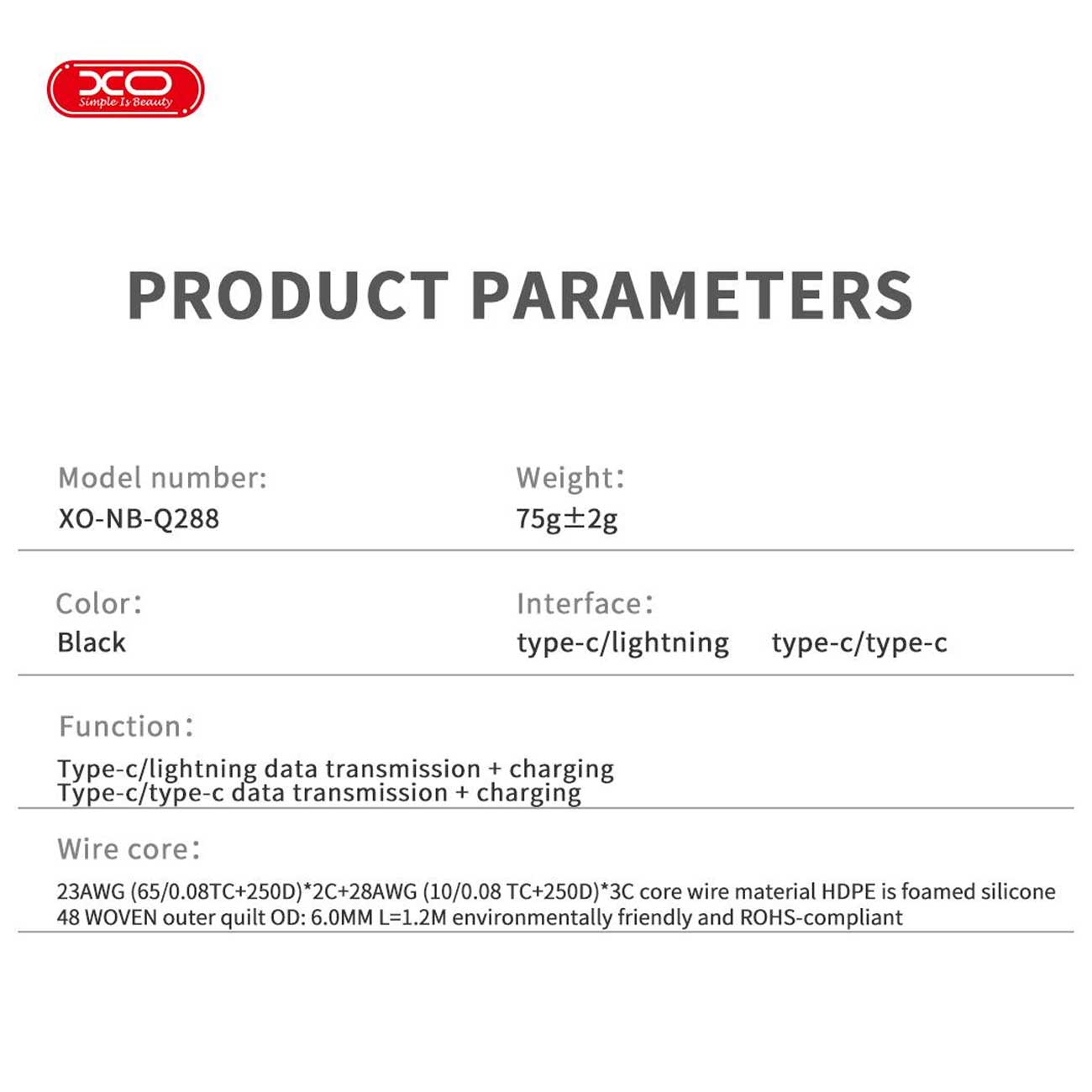 کابل تایپسی به لایتنینگ 27 وات 1.2 متری ایکساو XO NB-Q288A