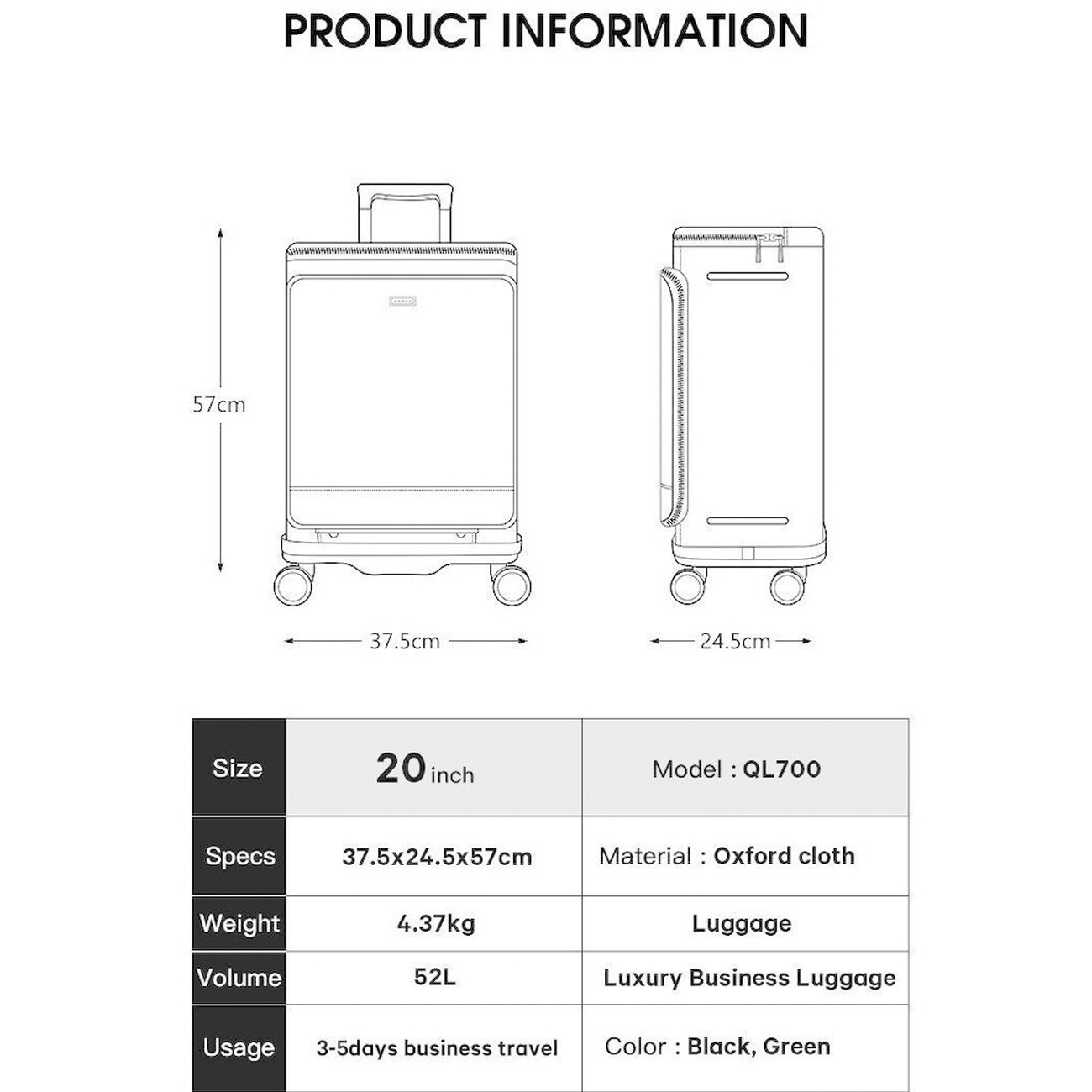 Bange QL700 Medium Travel Suitcase Fabric Haki with 4 Wheels Height 57cm
