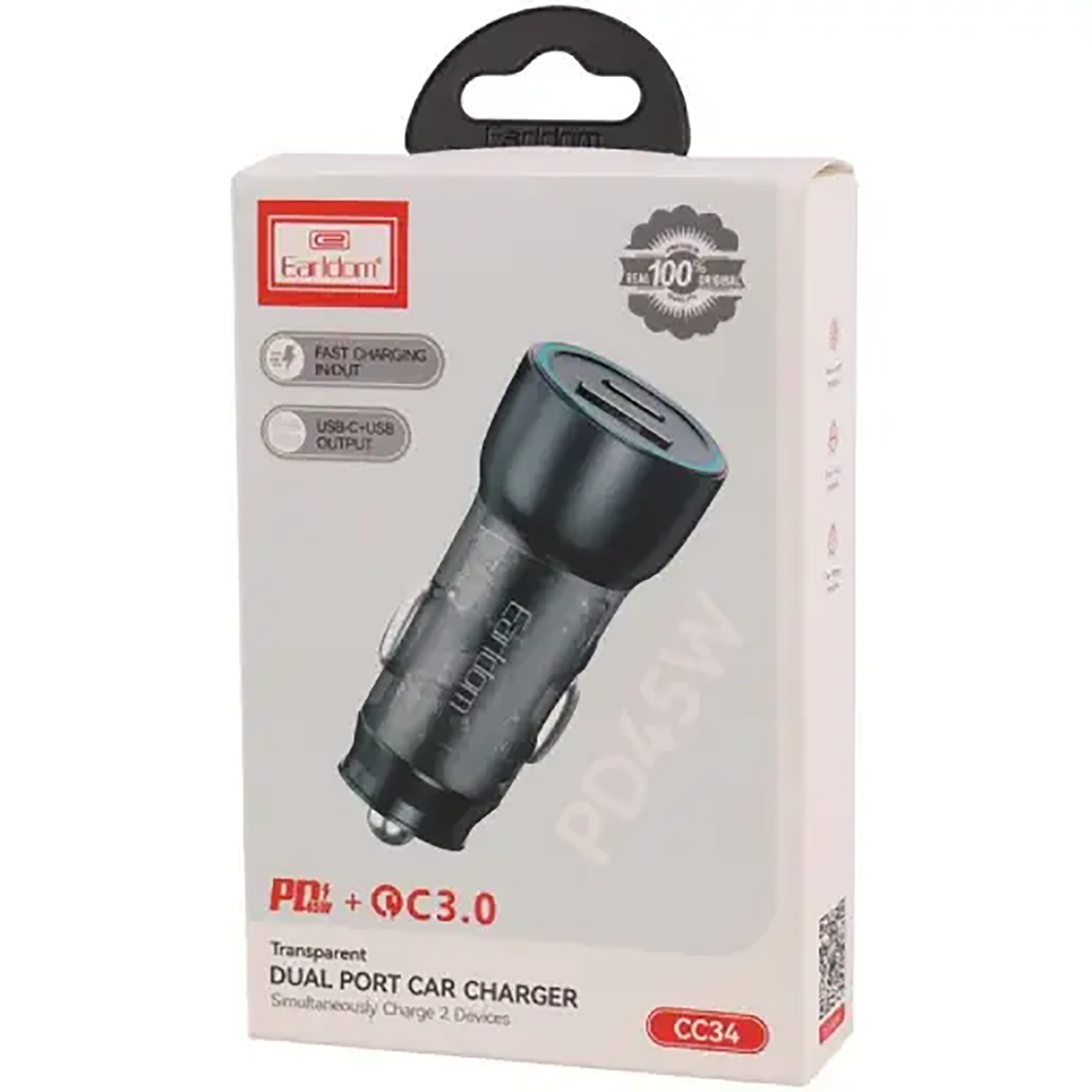 شارژر فندکی فست شارژ ماشین 25 وات 3 آمپر دو پورت ارلدام EARLDOM CC34